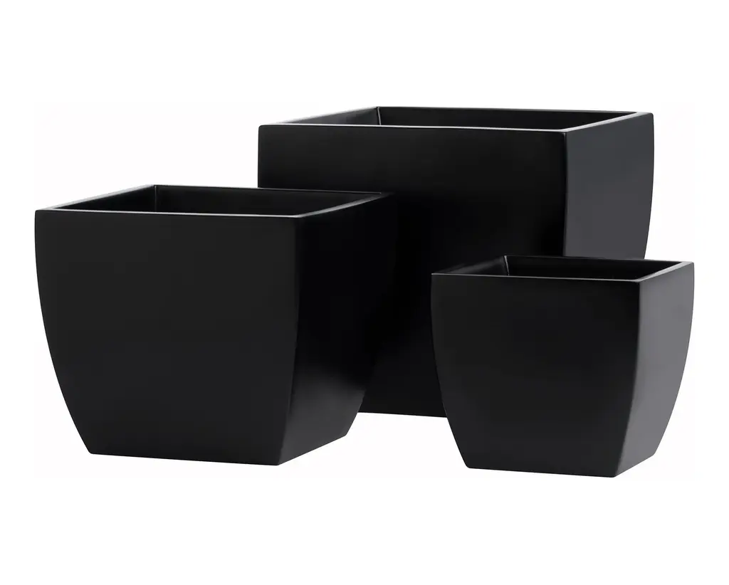Pacifica Square Curved Planter Box, Black, 16"x16"x14.5"