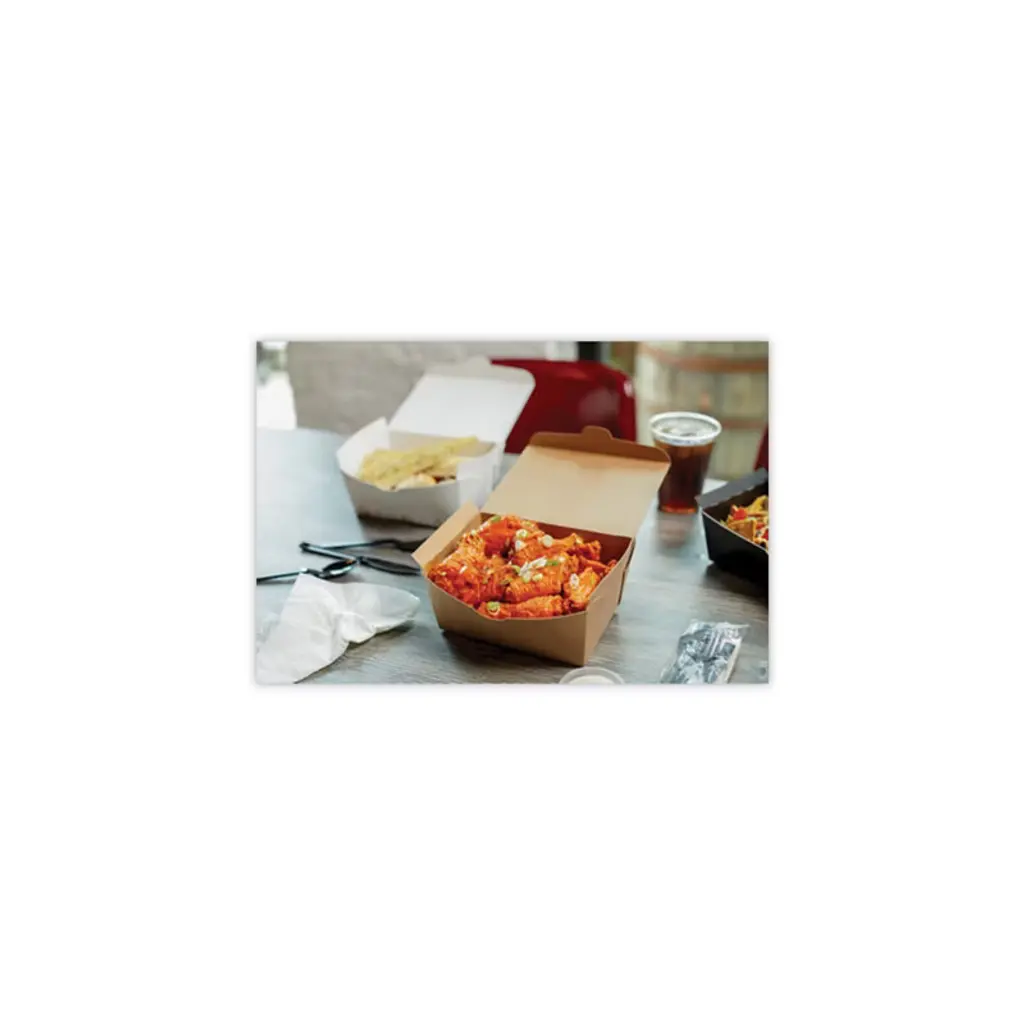 Searching for the perfect alternative to plastic containers? Pactiv Evergreen EarthChoice OneBox Paper Boxes with 37 oz. capacity help food prep and assembly run smoothly and stay mess-free thanks to a secure front latch closure. Send your to-go orders out with confidence using these easy to close, leak proof, paper containers that come pre-assembled!