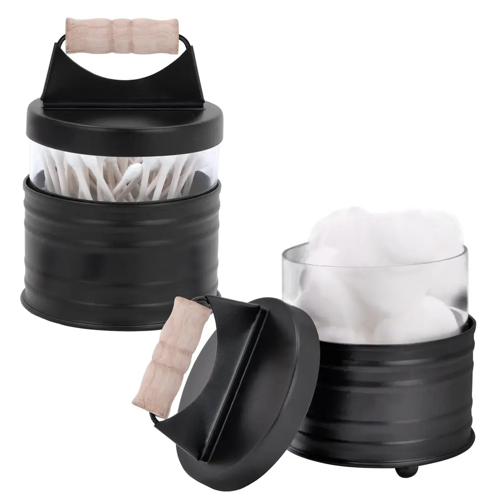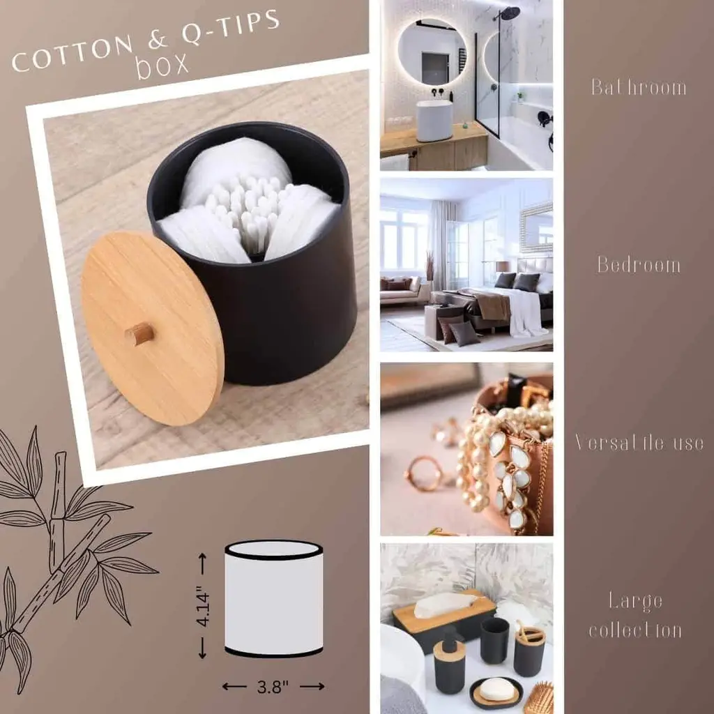 Padang Bathroom Accessories Set Bamboo - Cotton & Q-Tips Box Only - Black