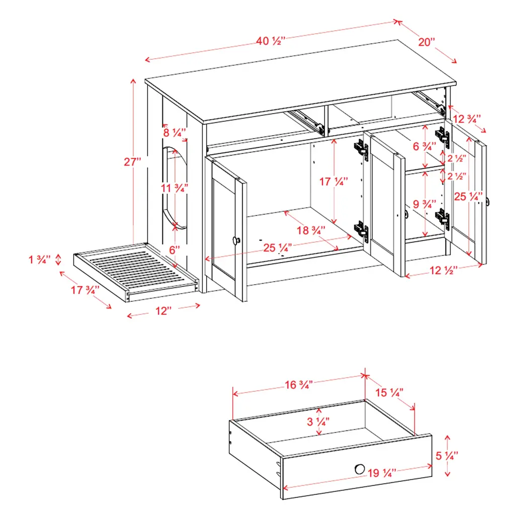 Transform your space with Ziva—the ultimate all-in-one solution for a tidy and organized cat household! Crafted from 100% solid wood, the Ziva 3-Door Cat Litter Enclosure seamlessly combines style and functionality. The spacious two-door compartment accommodates large litter boxes, while the adjacent one-door section is perfect for storing hefty bags of litter or cat food. Two additional drawers provide convenient storage for smaller cat care essentials.Designed to seamlessly blend with your décor, Ziva disguises its practical purpose behind a sleek, furniture-like facade. Its reversible design allows you to position the cat entry on either the left or right side, adapting effortlessly to any room layout. Ziva not only contains litter mess but, with an included litter catch, it also traps debris to keep your floors clean and pawprint-free. Also available in a compact two-door model for smaller spaces, Ziva is a functional and stylish addition to any home. Made with quality in Brazil, it's time to say goodbye to mess and hello to a cleaner, cat-friendly environment! Construction and Features: