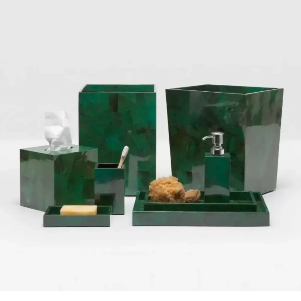 Our Palm Beach collection is the epitome of opulence. Art Deco–inspired emerald shell provides plenty of glamour for a bath, and the trays can add a vibrant touch to a vanity as well. The designers at Pigeon & Poodle believe the details of a home are just as important as the furniture. A gorgeous toothbrush holder or handcrafted canister can elevate an entire bath, the perfect frame can heighten the feel of a whole space, and a good-looking storage basket can be your look’s missing link. With thoughtful design and top-notch craftsmanship, Pigeon & Poodle create home accessories with the care and attention typically reserved for larger pieces of décor.