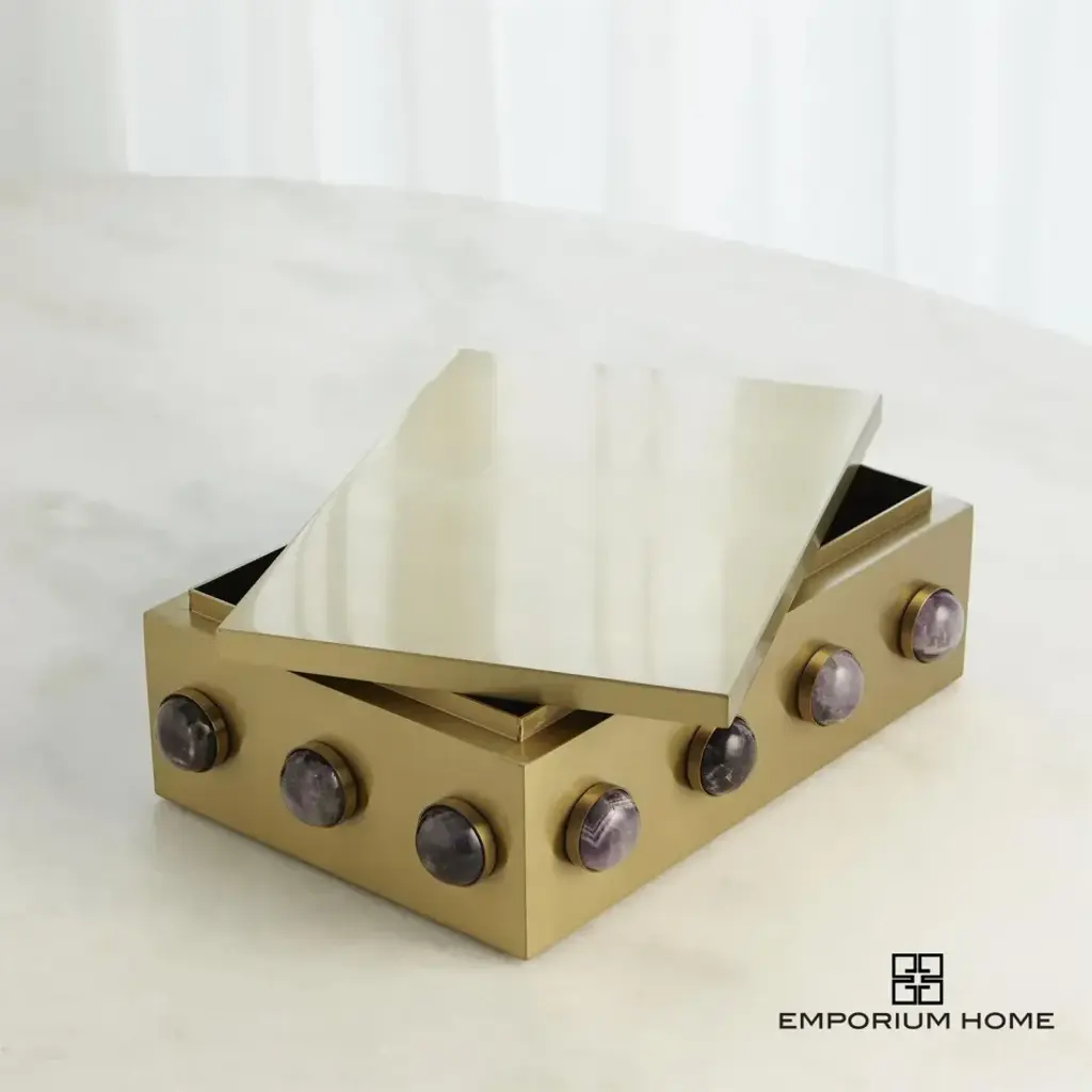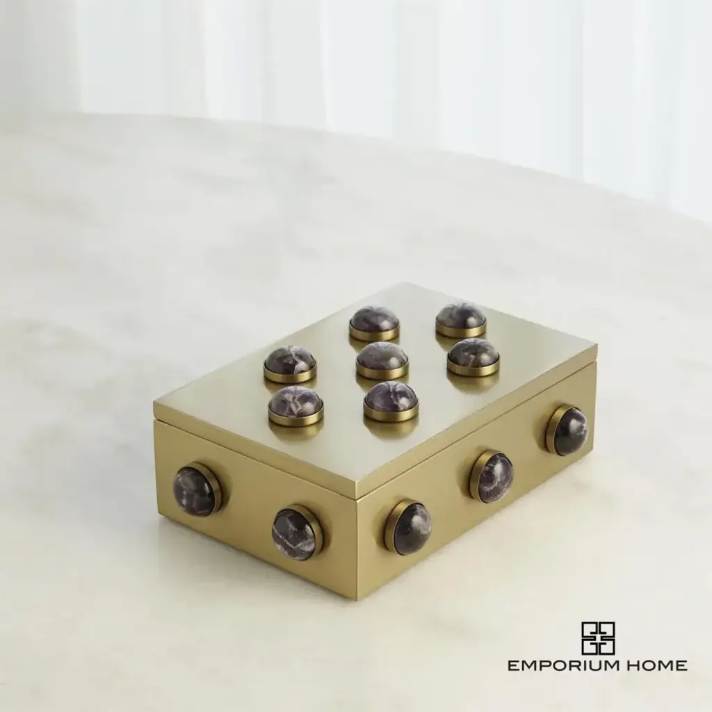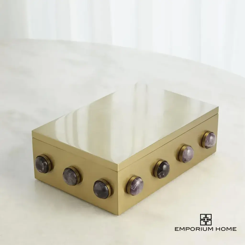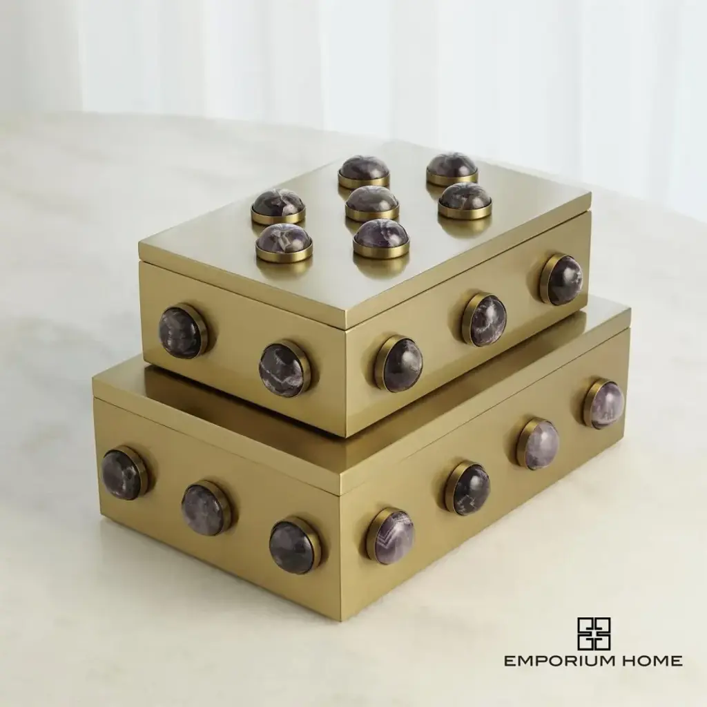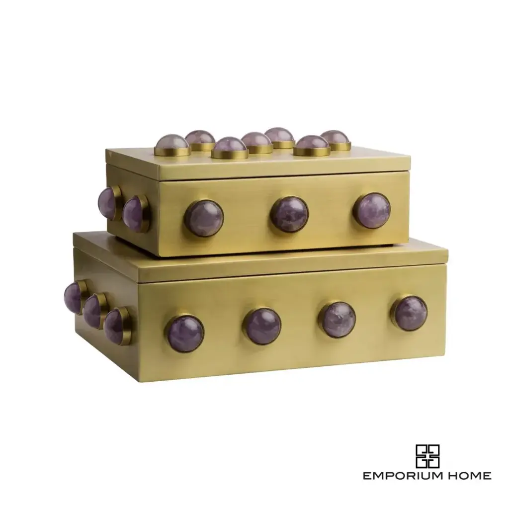 The Pandora Amethyst Boxes are meticulously handcrafted from stainless steel and adorned with a satin finish that serves as a backdrop for showcasing the natural beauty of the amethyst stones. From a fashion forward perspective, Global Views offers accessories, furniture, statement lighting, and an assortment of rugs and mirrors to add beauty and joy to your home.