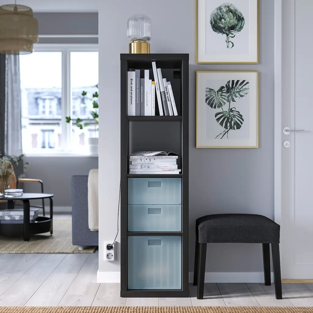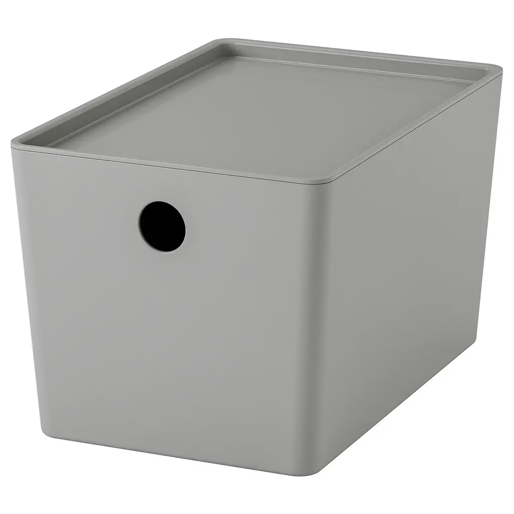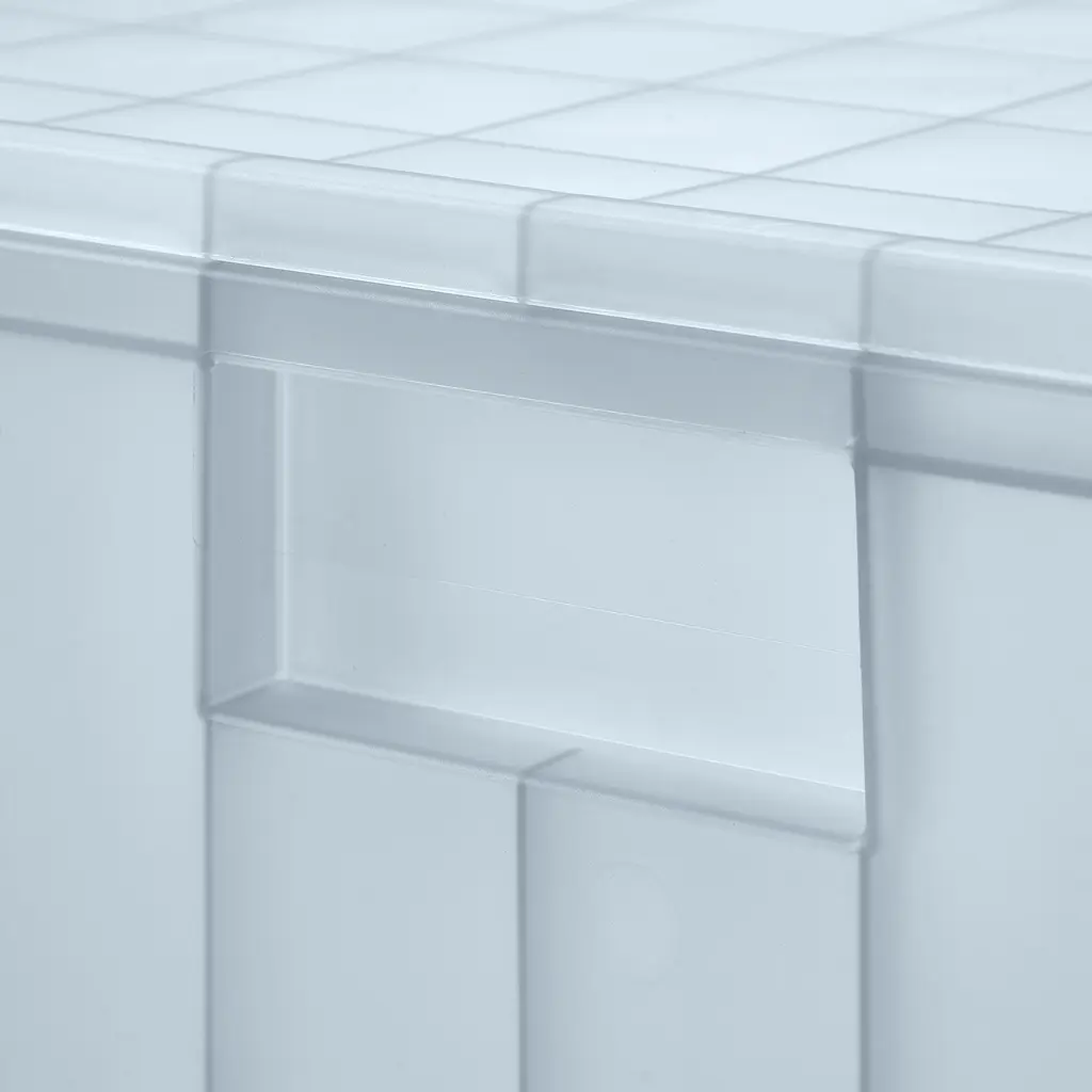 PANSARTAX Storage box with lid - transparent gray-blue 13x13x6 ½ ". You can easily see what’s inside and find what you’re looking for since the material is partly transparent. Fits in the VIHALS, BESTÅ and KALLAX storage series as well as in other storage with a depth of at least 13 in.