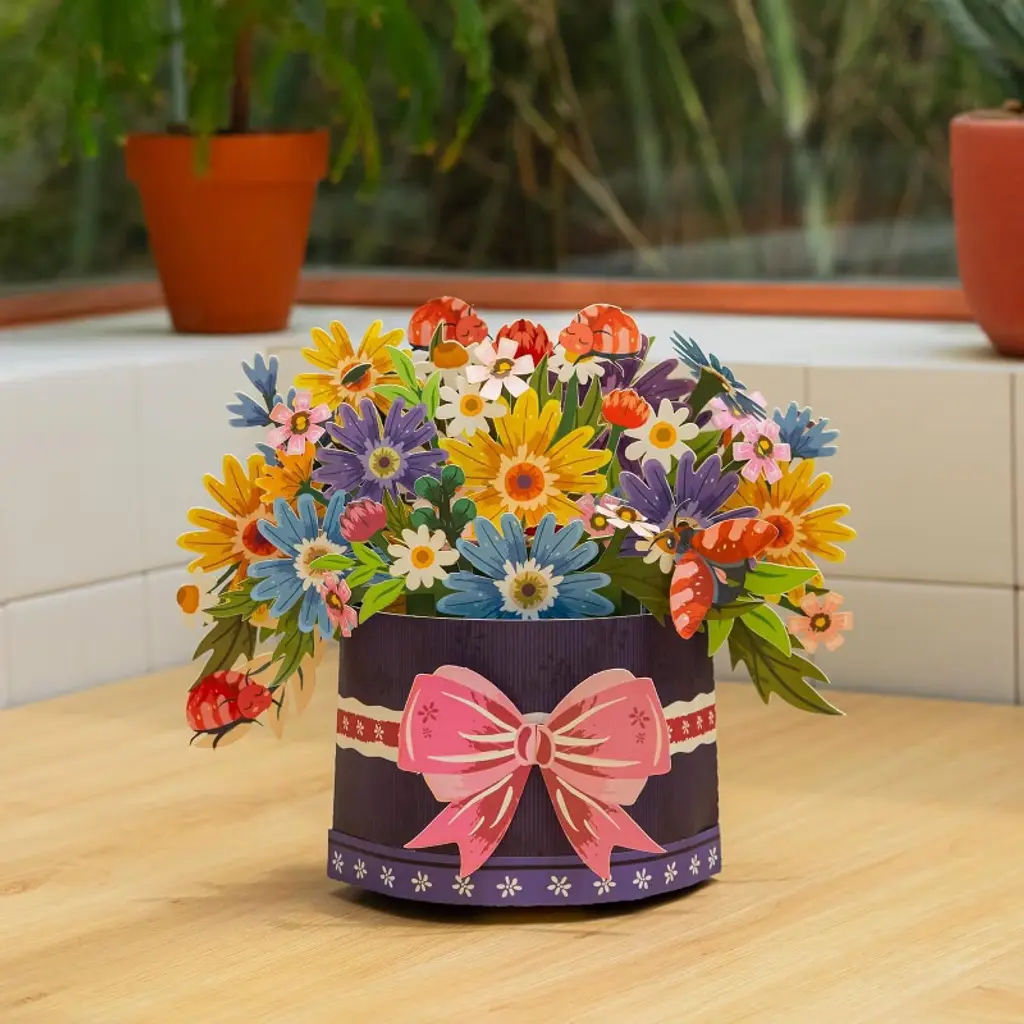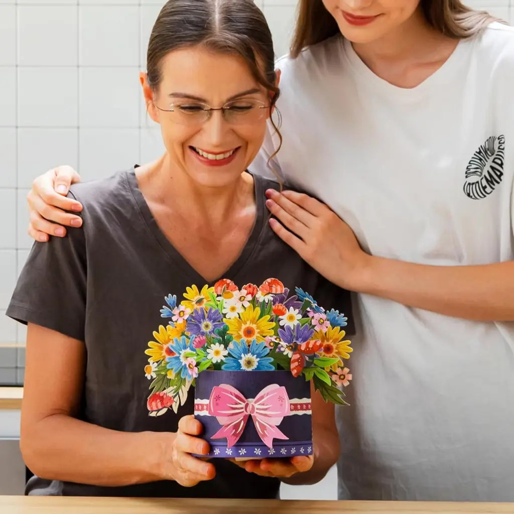 Celebrate every occasion with the Paper Love Festive Flower Box pop-up card, an extraordinary 10" card that opens to reveal a vibrant 3D box overflowing with beautiful flowers, sure to surprise and delight while showcasing your love and care. This card includes a separate blank insert tag, so you can write a heartfelt message for family, friends, or anyone special without covering the intricate design. Perfect as a thoughtful gift for birthdays, Valentine’s Day, anniversaries, weddings, thank-yous, or simply to brighten someone’s day, it’s crafted from recycled materials with no trees harmed, and every purchase helps plant a tree—an eco-friendly choice that leaves a lasting impression while restoring the planet.