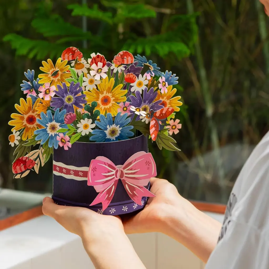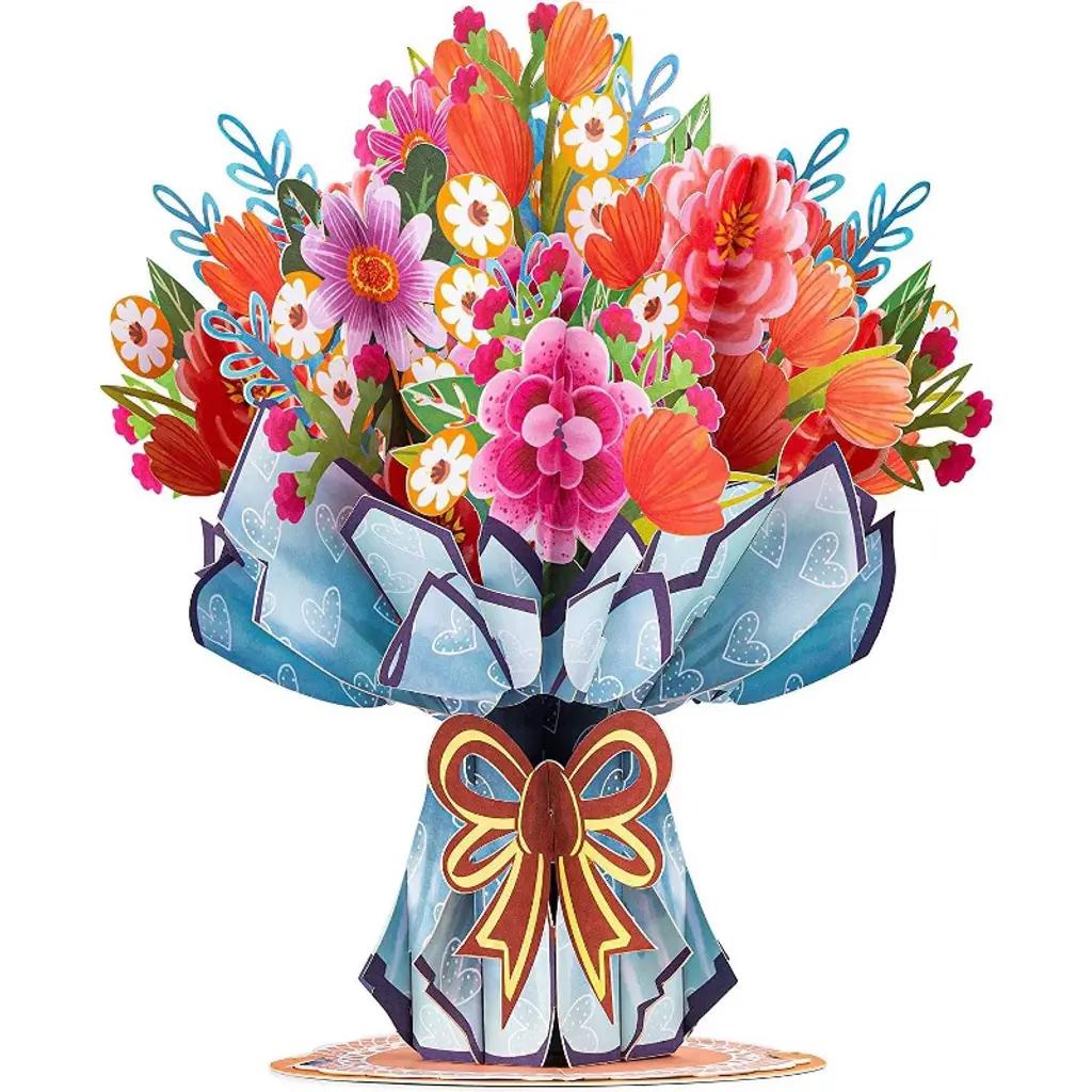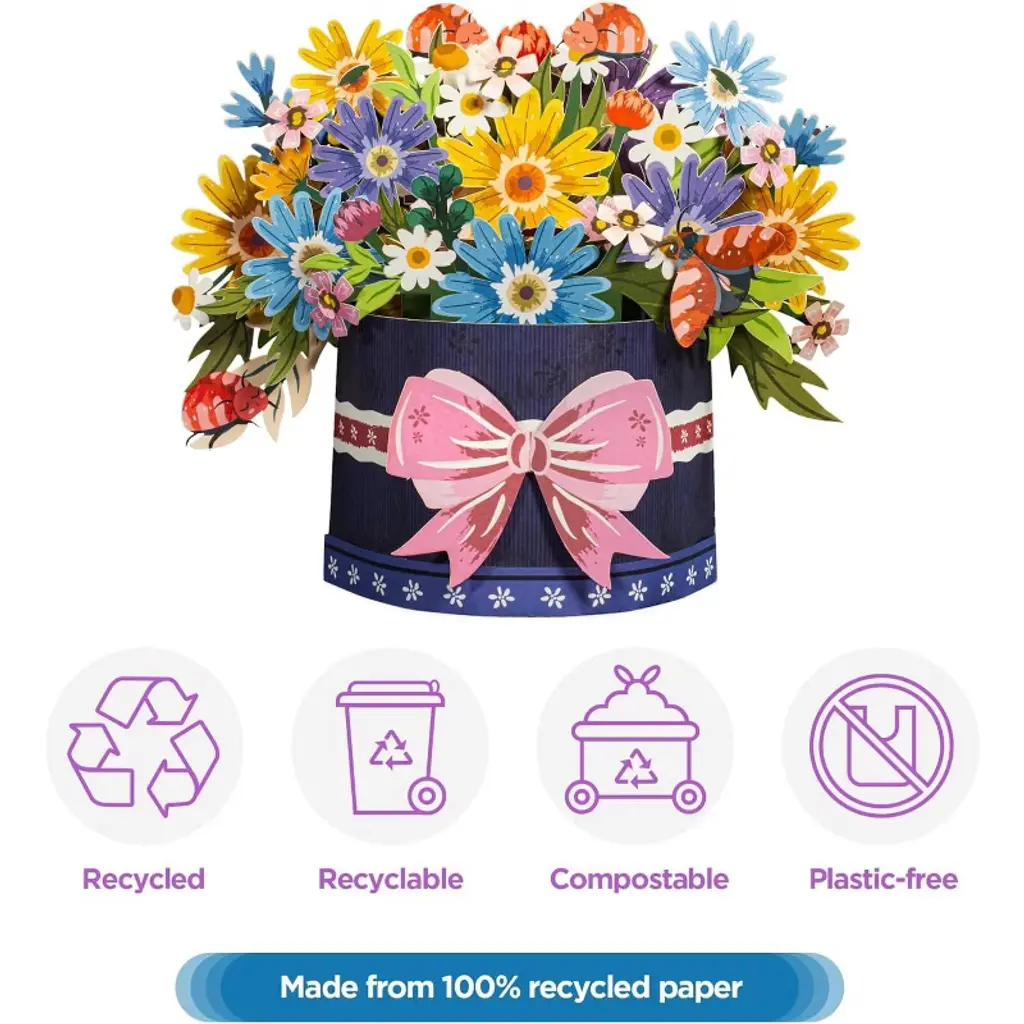 Paper Love Frndly, Festive Flower Box 3D Pop Up Card, For All Occasions - 100% Recycled And Eco-friendly, 10 Inch Bouquet