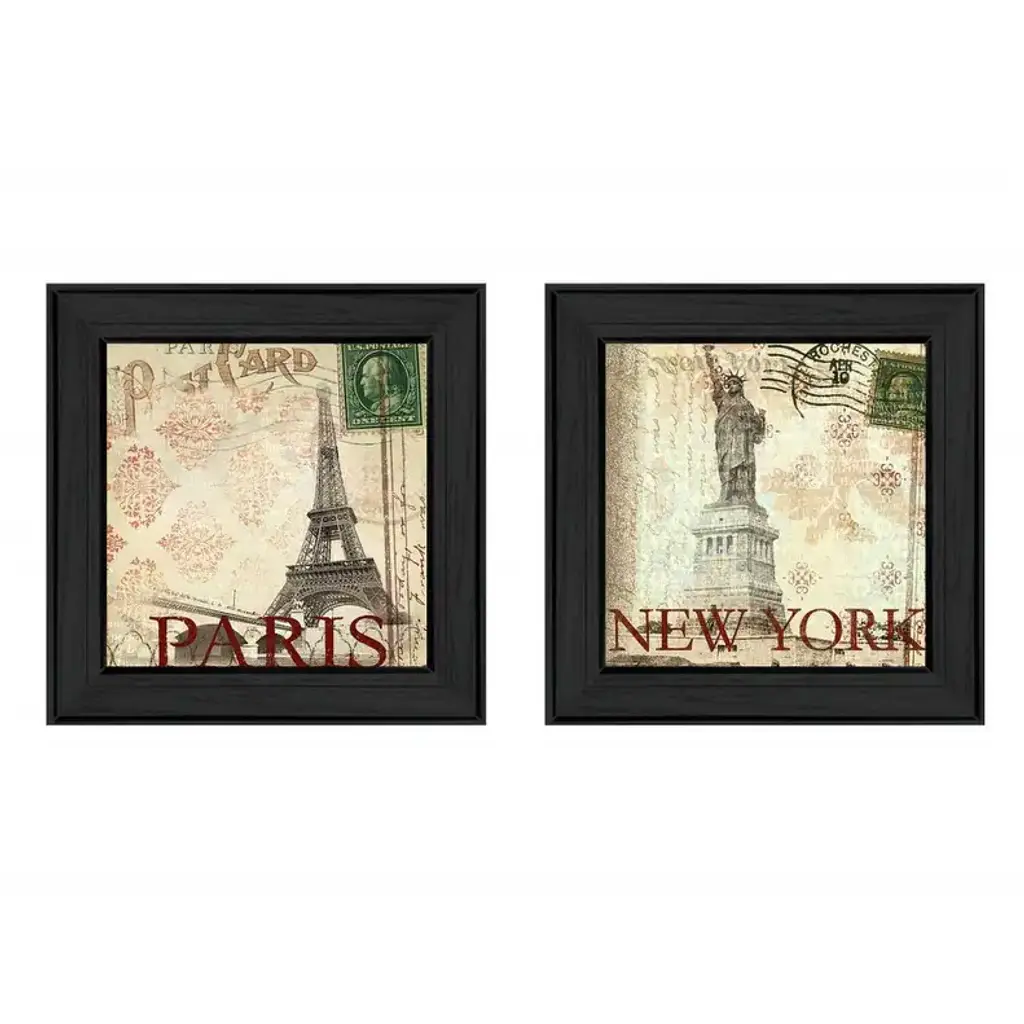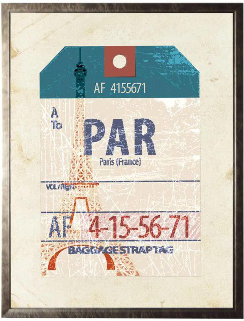 Presenting a Paris travel ticket on distressed background framed in a pewter shadowbox. 13.5x17.5