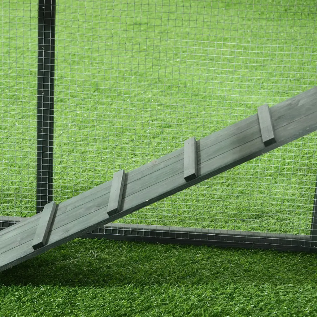PawHut knows you need a place for your chickens to be safe outside with this chicken coop with run. The chicken pen is made of solid fir, so you won't have to worry about it falling apart whether you set it up outdoors or indoors. Hens access the nesting box off a ramp, multiple inside perches accommodate birds, screened windows allow for proper ventilation and airflow. Bring this hen house a setup for your chickens that's professional and provides adequate living space.