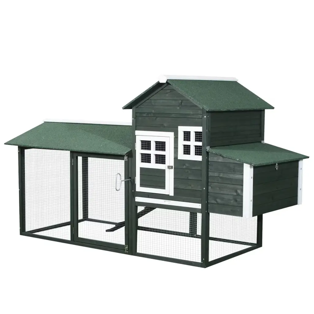 Pawhut 84" Wooden Chicken Coop, Chicken House Poultry Hen Cage With Covered Big Run, Nesting Box, And Perches, Green