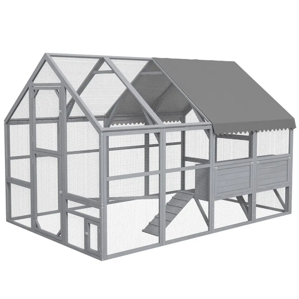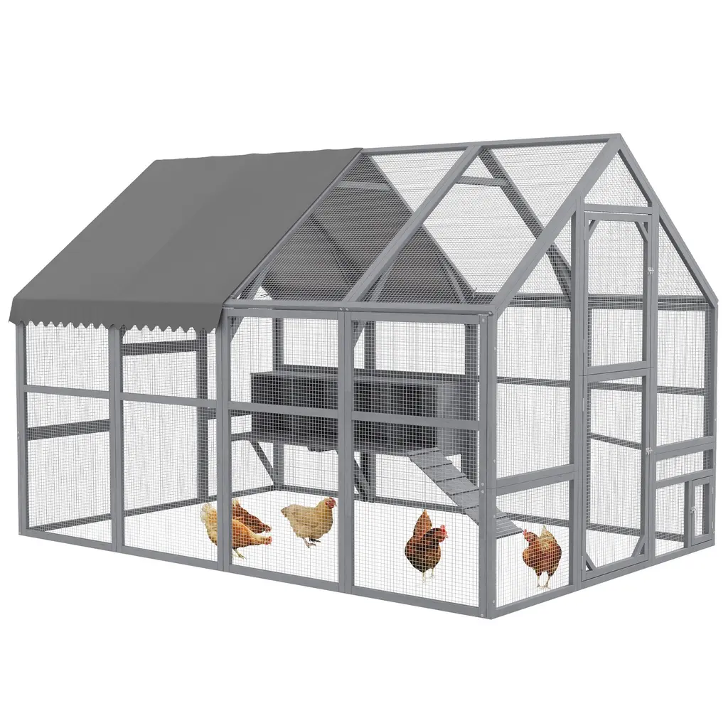Pawhut 9.2' X 6.1' Large Chicken Coop With Nesting Box, Water-resistant And Anti-uv Cover, Door For 8-12 Chickens, Ducks, Rabbits, Gray