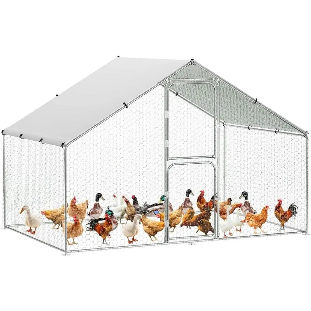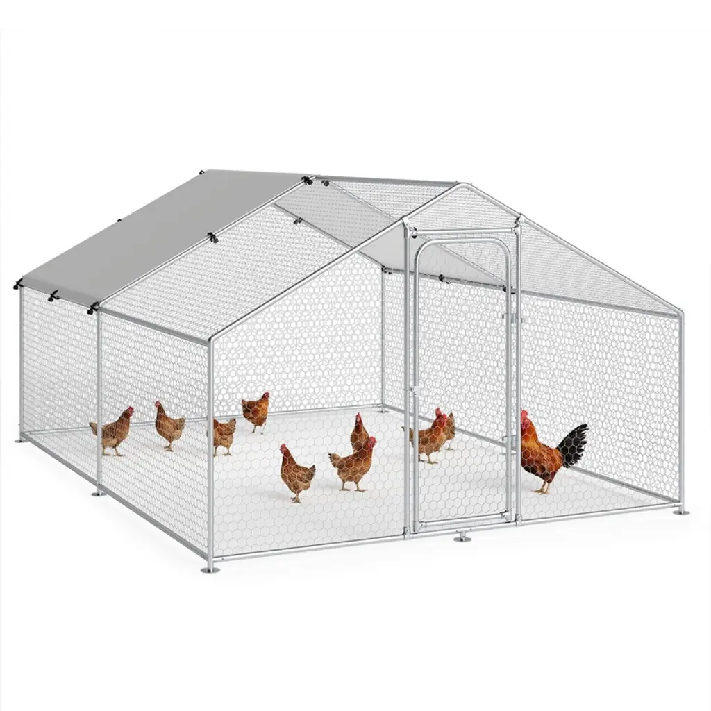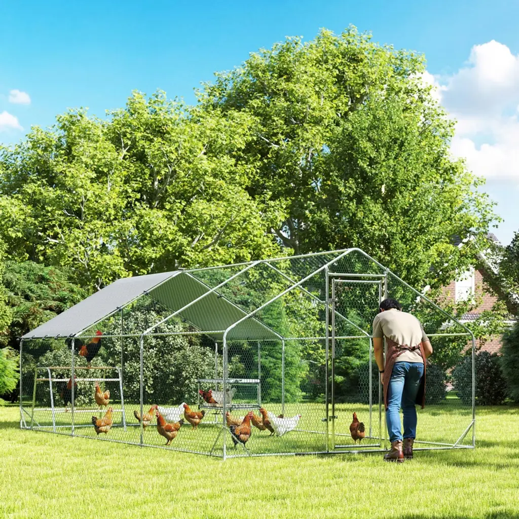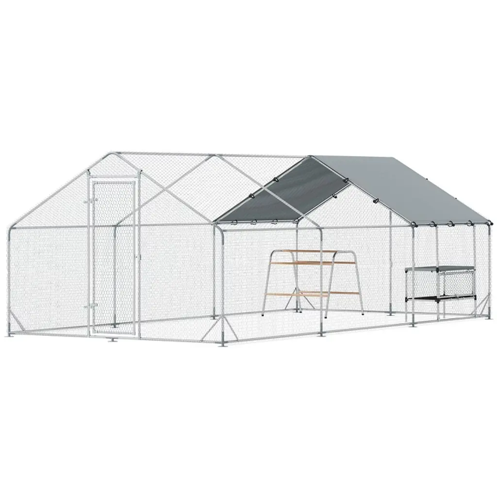Pawhut Large Metal Chicken Coop, Walk In Chicken Run For Yard With Waterproof & Anti-uv Cover, Roosting Bar, Nesting Box, 9.8' X 19.7' X 6.4'