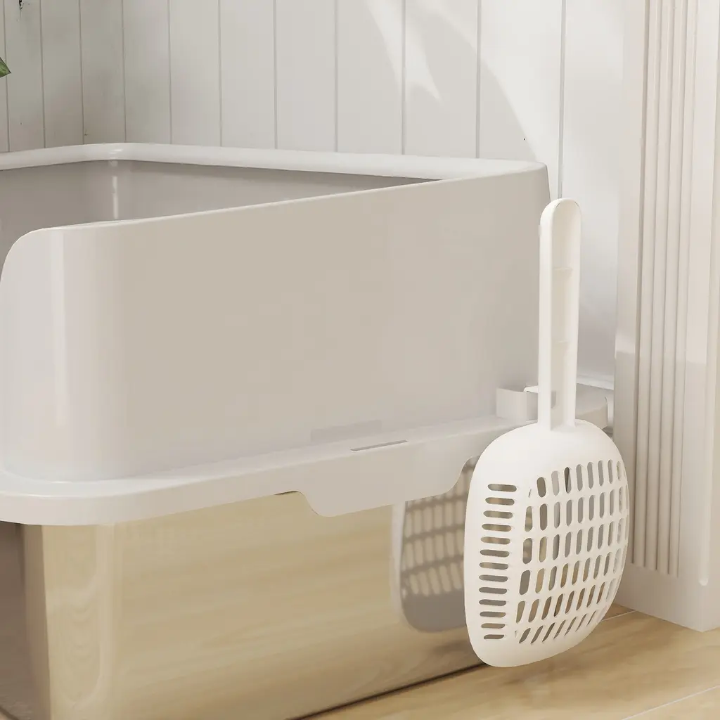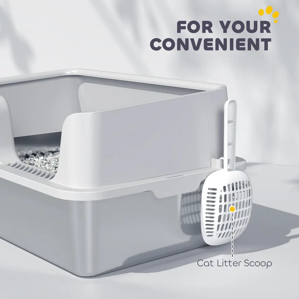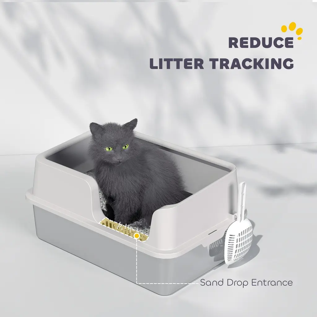 Descriptions:Keep your home tidy and odor-free with the PawHut extra large cat litter box. Its 5.1" high sides prevent litter spills, while the large cat litter box resists odors and stains for easy upkeep. Suitable for larger felines, this cat toilet includes a sand drop area to catch litter from your cat's paws and a scoop for convenient cleaning.Features:● High sides prevent litter spillage during use● Buckle connections for easy, secure assembly● Stainless steel tray resists odors and stains● Sand drop area captures litter from cat's paws● Included scoop simplifies cleaning● Extra large dimensions suit cats up to 33 lbs.● No assembly required.Specification:● Color: Light Gray● Material: Stainless Steel, PP● Overall Dimensions: 23.6" L x 15.7" W x 11" H● Litter Tray: 23.6" L x 15.7" W x 5.9" H● Scoop: 10.2" L x 4.5" W● Item Label: D31-130V00LG