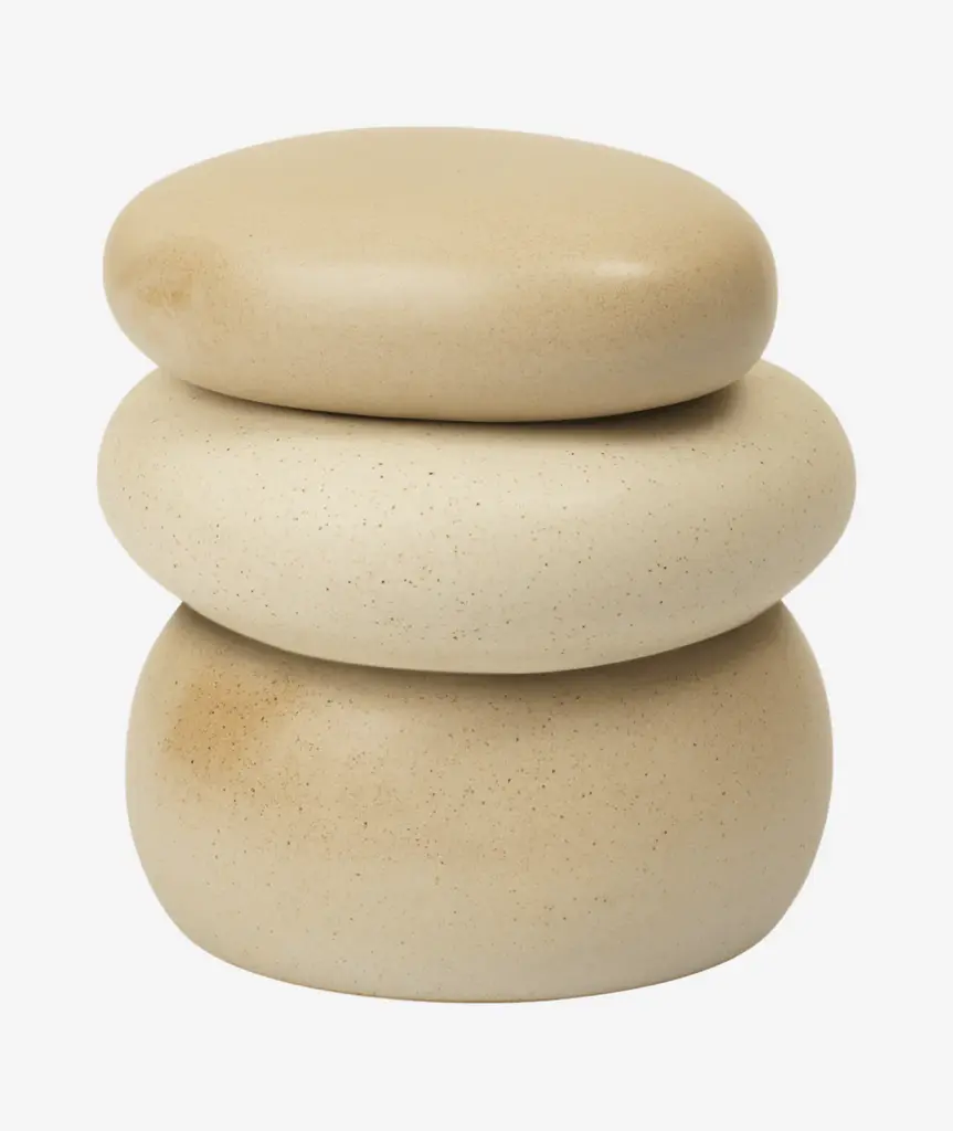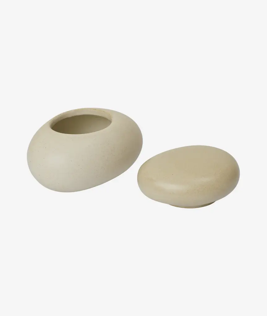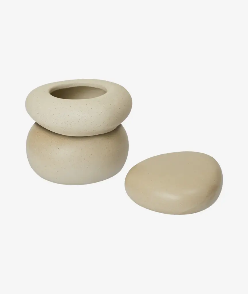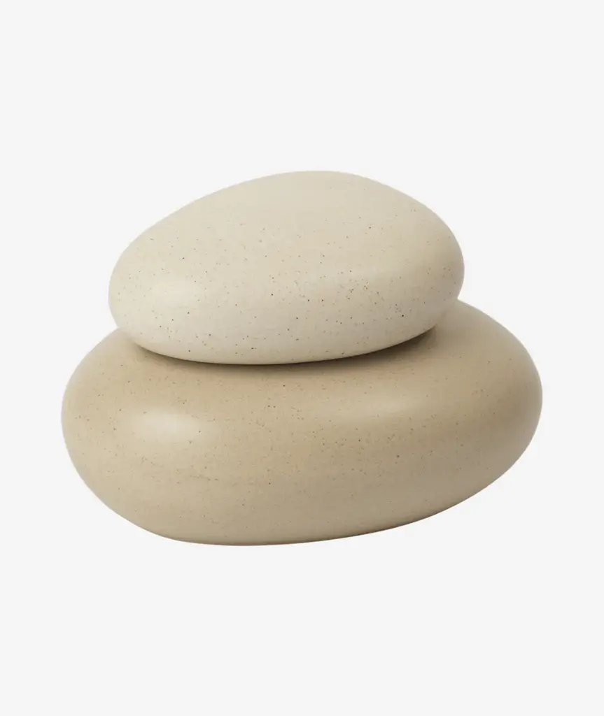 The Pebble Box draws inspiration from the natural beauty of stacked pebble stones along the coast, with each box mimicking the smooth, rounded shapes of pebbles. Crafted from glazed ceramic, it features a sleek, polished finish that highlights the elegance and calming appeal of the design. The Pebble Box is available in different sizes and can be displayed individually or stacked together for a dynamic, layered look.