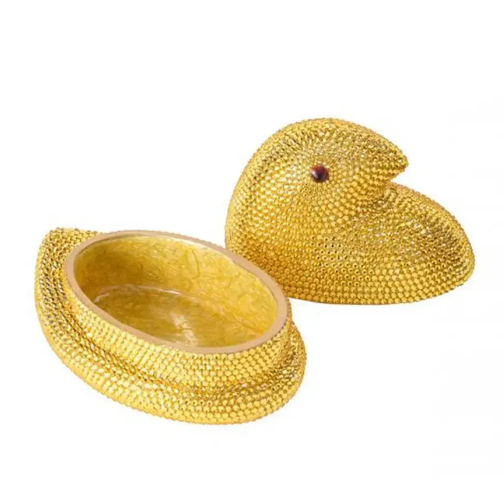 The PEEPS® Chick Rock Box is not only a luxurious and exquisite work of craftsmanship, plated with 14k matte gold and adorned with 3,848 light topaz stones, but it's also a nod to the rich history of the beloved PEEPS® marshmallow candy. Did you know PEEPS® have been around since 1953? In fact, the first PEEPS® were handmade, and it took 27 hours to create just one marshmallow chick! Every stone on the box is meticulously placed by hand, showcasing our artisan's unparalleled attention to detail. Add an extra dose of whimsey and charm to your collection with the PEEPS® Chick Rock Box. With warming weather and blooming flowers, no sweet treat is better aligned with springtime than PEEPS®. Tracing back to the 1920’s, Rodda Candy Company began producing marshmallows shaped as chicks, coated in vibrantly colored sugar. Originally produced as a treat exclusive to Easter, the chicks were first meant to be a symbol of new life, a concept often associated with springtime. After being acquired by Just Born Candy Company in the 1950’s, the once seasonal sweet treat was able to be mass produced and quickly became a favorite all around the world. Peeps have become a staple and favorite to many, now branching into other shapes, flavors, and holidays. From Halloween pumpkins to lavender bunnies, Peeps can be a sweet treat for every occasion, but nothing represents the iconic snack as well as the original yellow chick. Just Born Candy Company In 1923, a Russian immigrant with a love for creating candy, Sam Born, created Just Born Candy Company. What originally started with his invention that automatically inserted the stick into a lollipop would become a company that makes several of the world’s most popular candies today. With a devotion to high quality ingredients, Just Born continues to innovate their products by adding new colors, designs, and flavors.