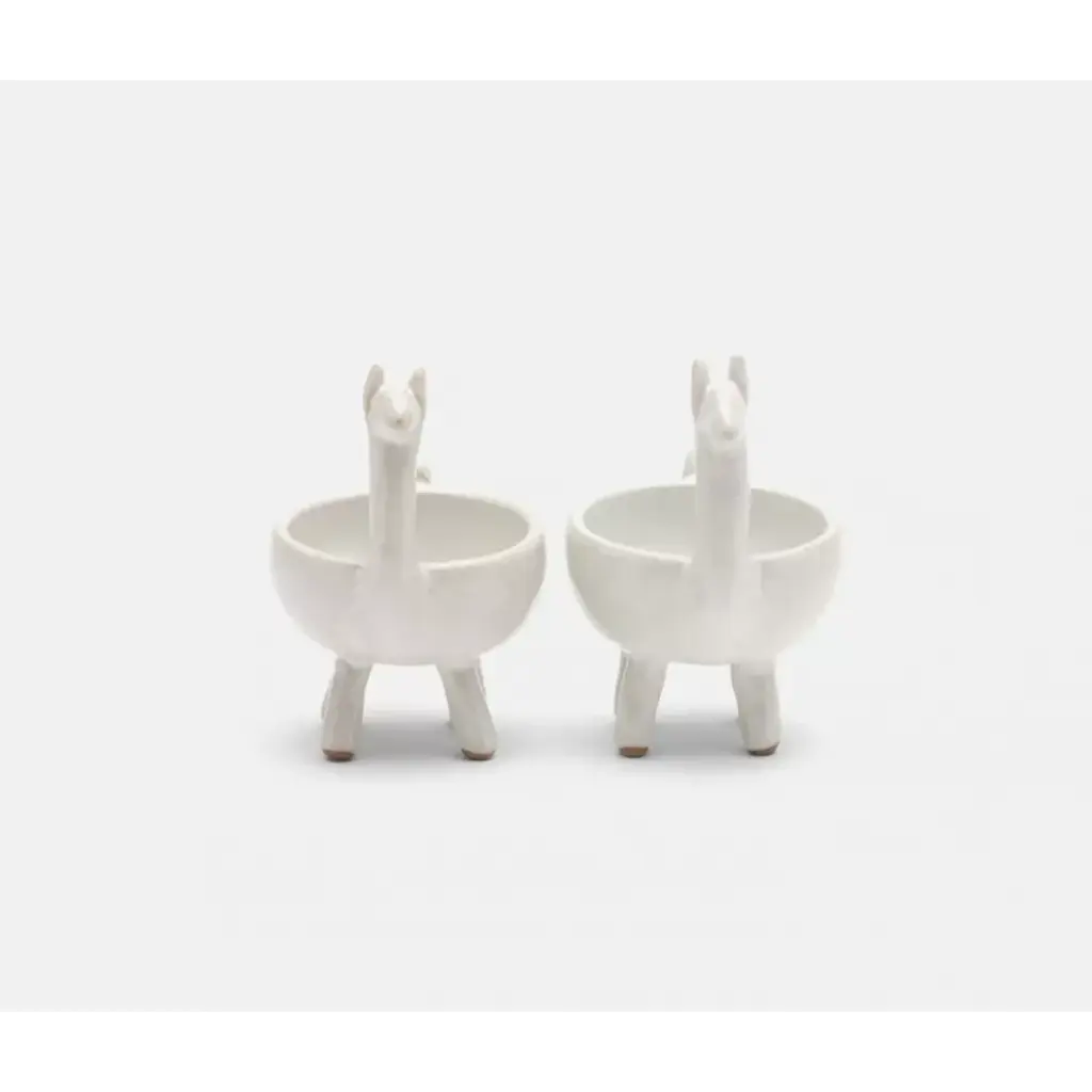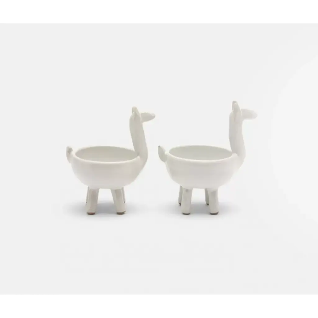 Percy White Glaze Llama Pinch Bowls, Boxed Set Of 2