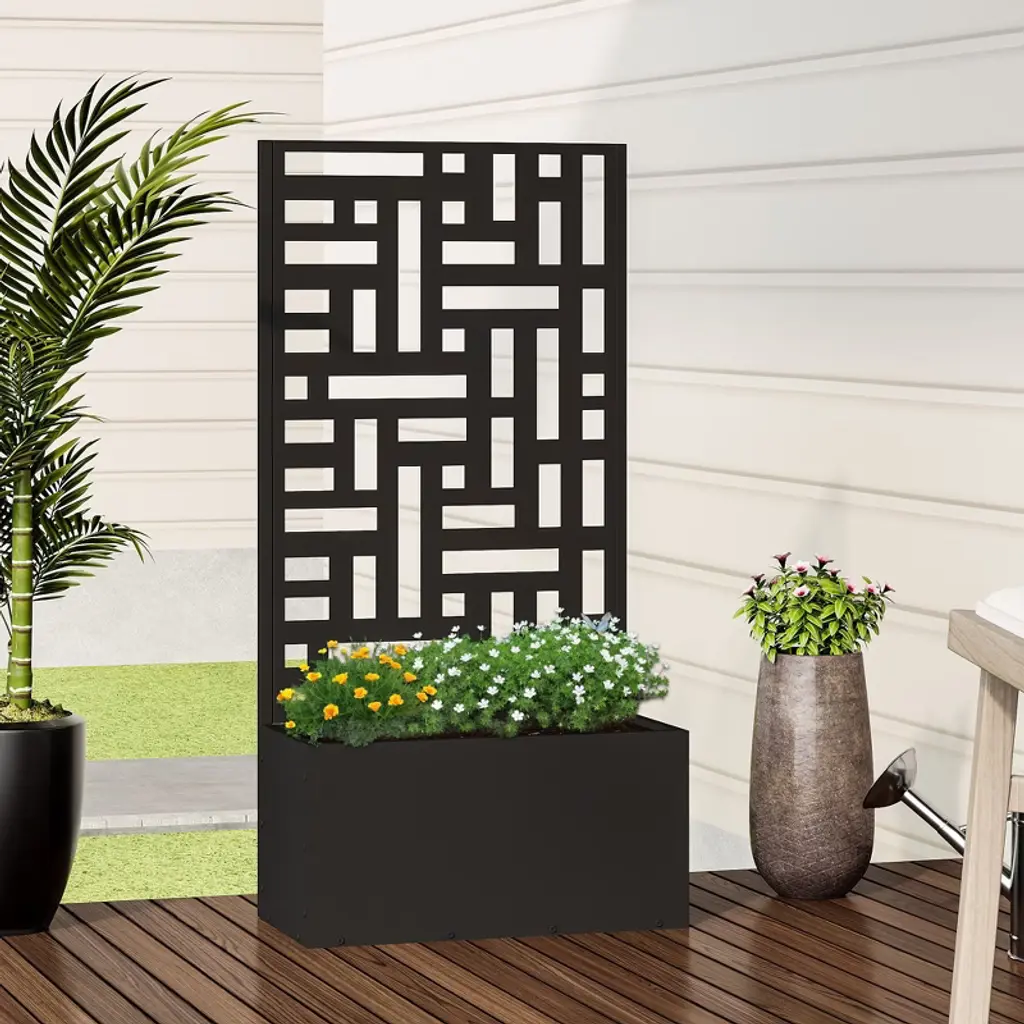 This elegant trellis planter is the perfect addition to your outdoor space, combining functionality and style in a durable, metal design. Crafted with a sturdy metal structure, it boasts a high-end texture and a surface coating that ensures rust and corrosion resistance, allowing your plants to thrive in all weather conditions. The perfect size, built-in drainage holes, and clever combination of a planter box with a trellis create a space-saving and visually appealing addition to any garden, patio, balcony, or backyard.