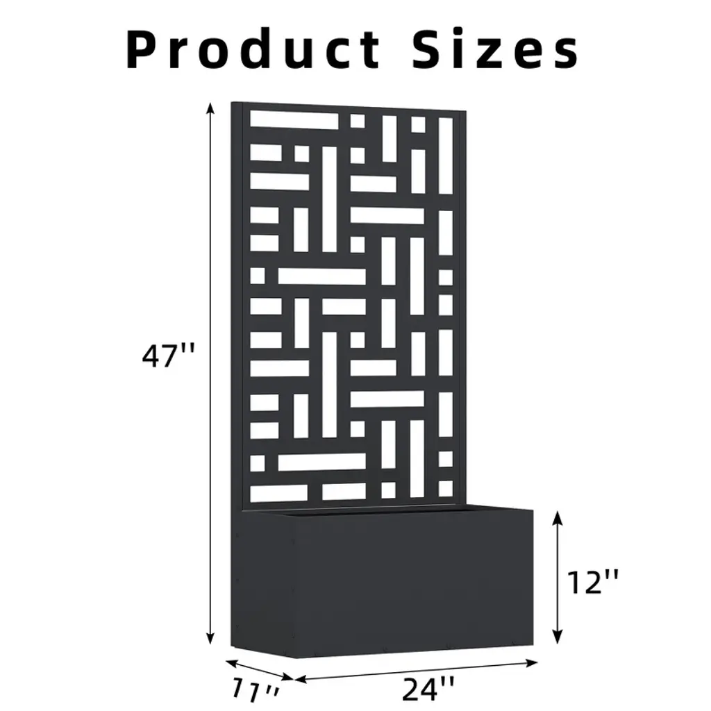 Pexfix 47 In. H X 24 In. W Black Metal Rectangle Wall Planter Box With Trellis For Climbing Plants