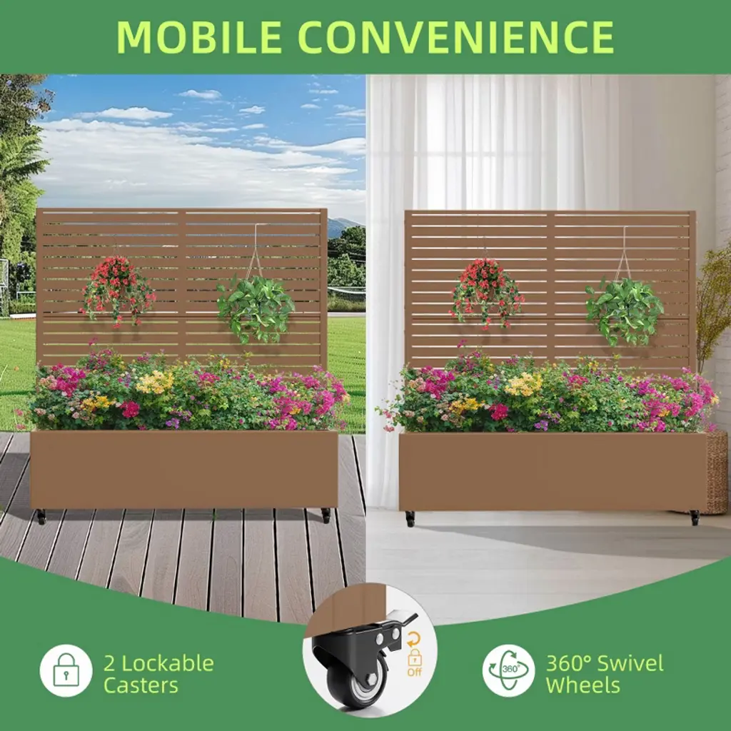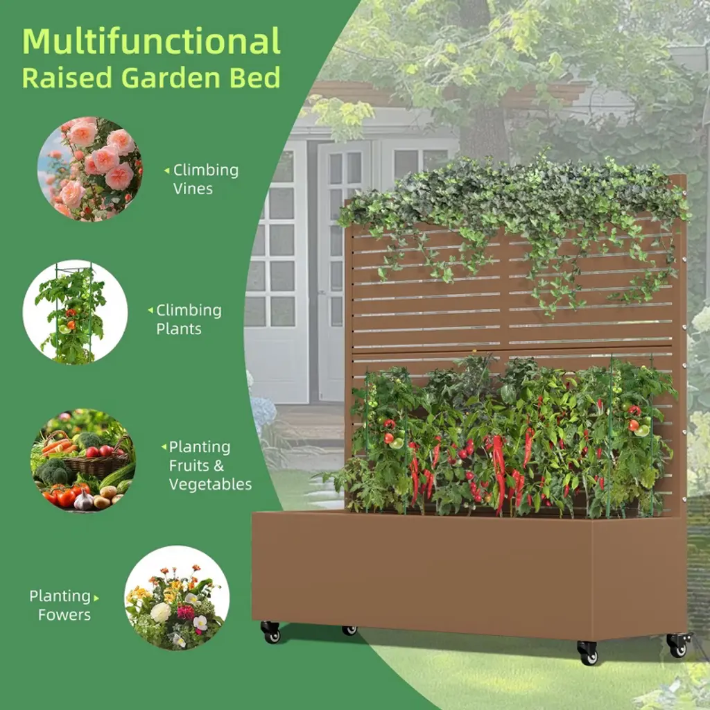 Pexfix 47 In. H X 47 In. W Brown Metal Rectangle Wall Planter Box With Trellis For Climbing Plants