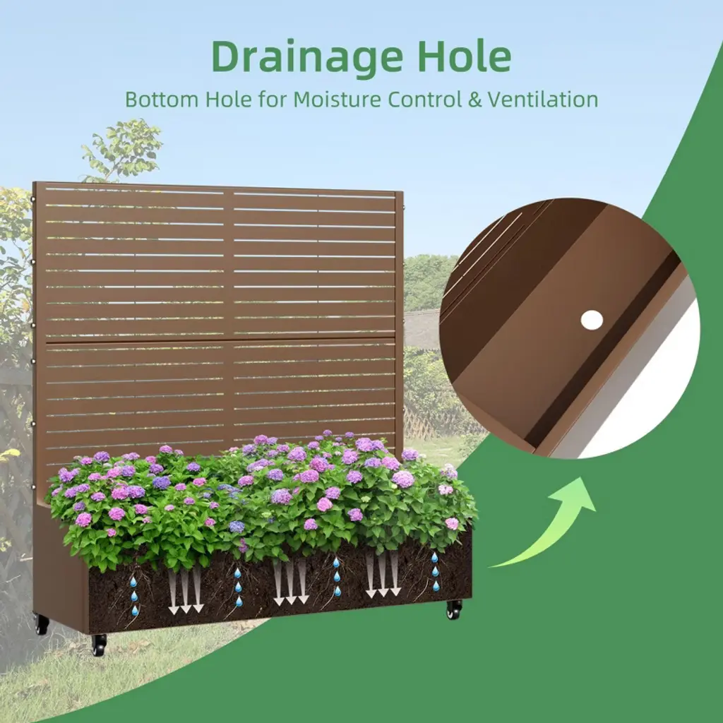 This elegant trellis planter is the perfect addition to your outdoor space, combining functionality and style in a durable, metal design. Crafted with a sturdy metal structure, it boasts a high-end texture and a surface coating that ensures rust and corrosion resistance, allowing your plants to thrive in all weather conditions. The perfect size, built-in drainage holes, and clever combination of a planter box with a trellis create a space-saving and visually appealing addition to any garden, patio, balcony, or backyard.