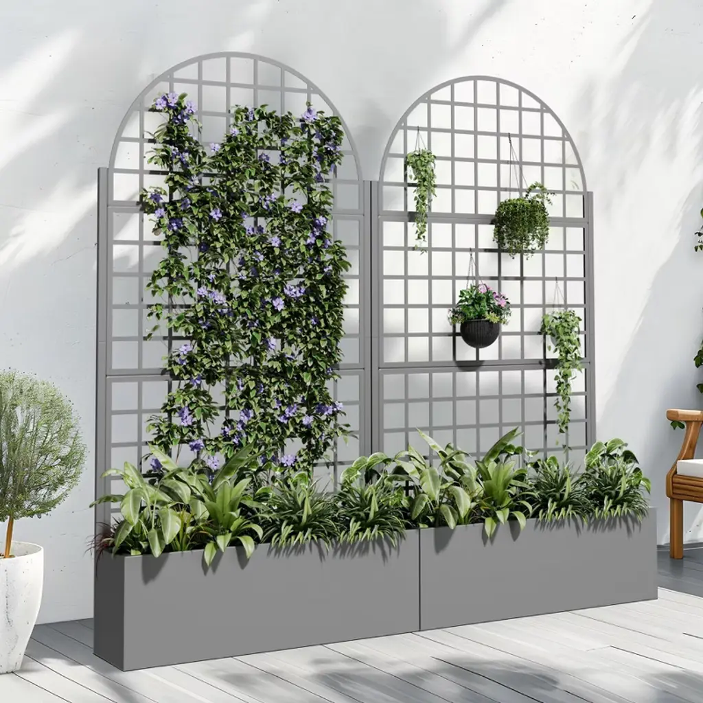 This innovative Trellis with Planter Box not only provides an excellent space for growing plants or vegetables, but its screen panels also add decorative elegance and support for climbing vines. It is made from durable galvanized metal, ensuring it can withstand harsh temperatures without cracking. Additionally, it offers a practical solution for hiding outdoor equipment like air conditioners.