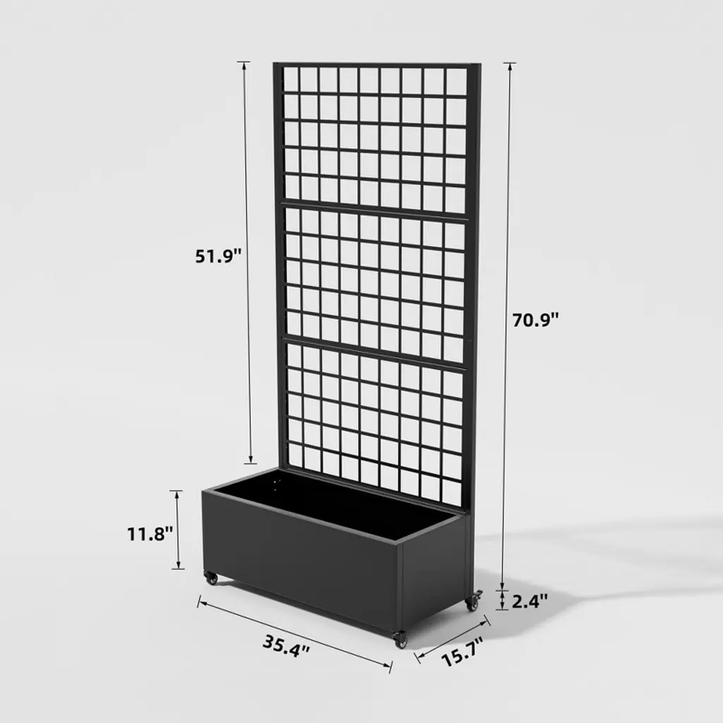 This innovative Trellis with Planter Box not only provides an excellent space for growing plants or vegetables, but its screen panels also add decorative elegance and support for climbing vines. It is made from durable galvanized metal, ensuring it can withstand harsh temperatures without cracking. Additionally, it offers a practical solution for hiding outdoor equipment like air conditioners.