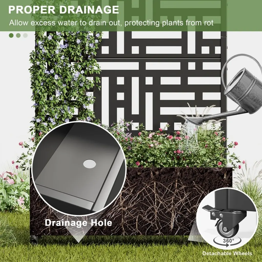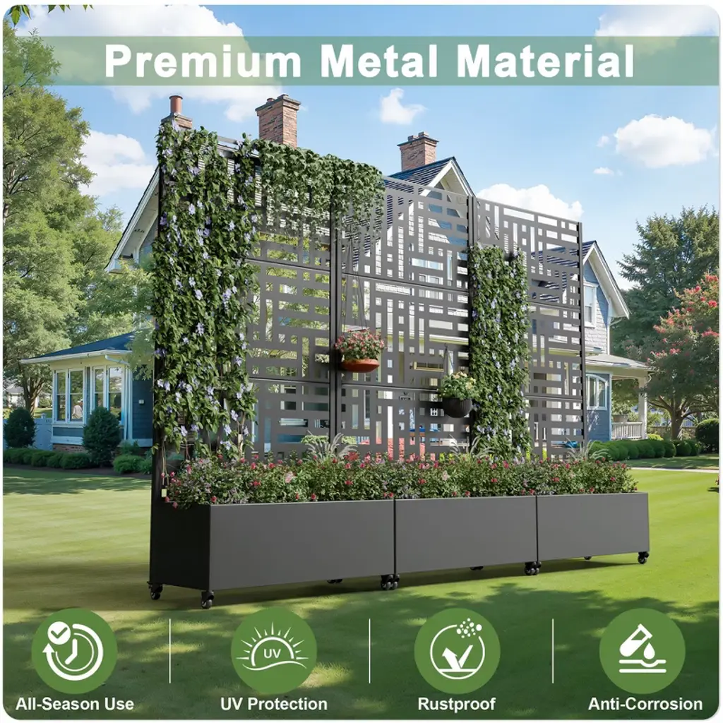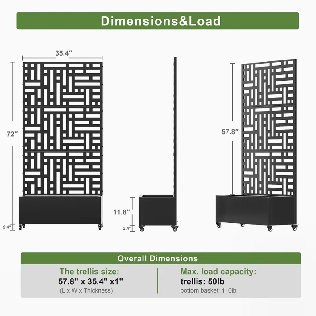 This innovative Trellis with Planter Box not only provides an excellent space for growing plants or vegetables, but its screen panels also add decorative elegance and support for climbing vines. It is made from durable galvanized metal, ensuring it can withstand harsh temperatures without cracking. Additionally, it offers a practical solution for hiding outdoor equipment like air conditioners.