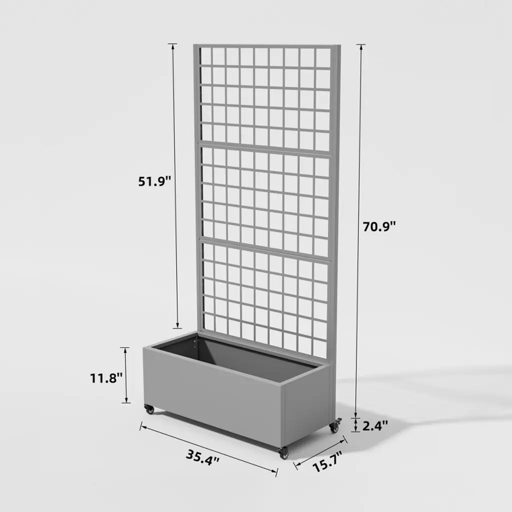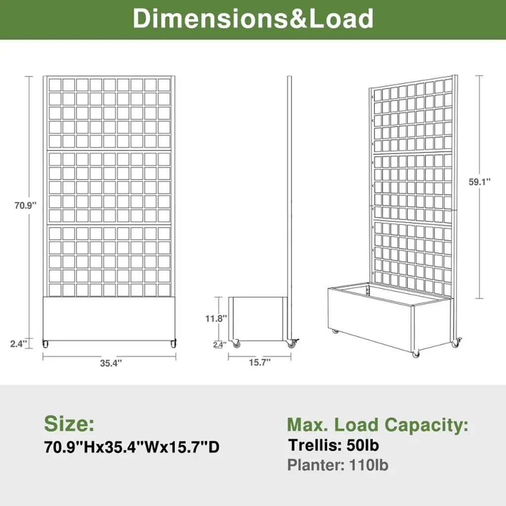 This innovative Trellis with Planter Box not only provides an excellent space for growing plants or vegetables, but its screen panels also add decorative elegance and support for climbing vines. It is made from durable galvanized metal, ensuring it can withstand harsh temperatures without cracking. Additionally, it offers a practical solution for hiding outdoor equipment like air conditioners.