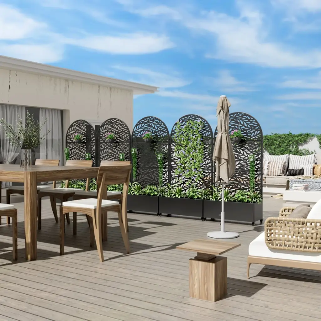 This innovative Trellis with Planter Box not only provides an excellent space for growing plants or vegetables, but its screen panels also add decorative elegance and support for climbing vines. It is made from durable galvanized metal, ensuring it can withstand harsh temperatures without cracking. Additionally, it offers a practical solution for hiding outdoor equipment like air conditioners.