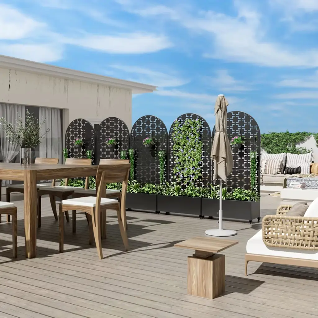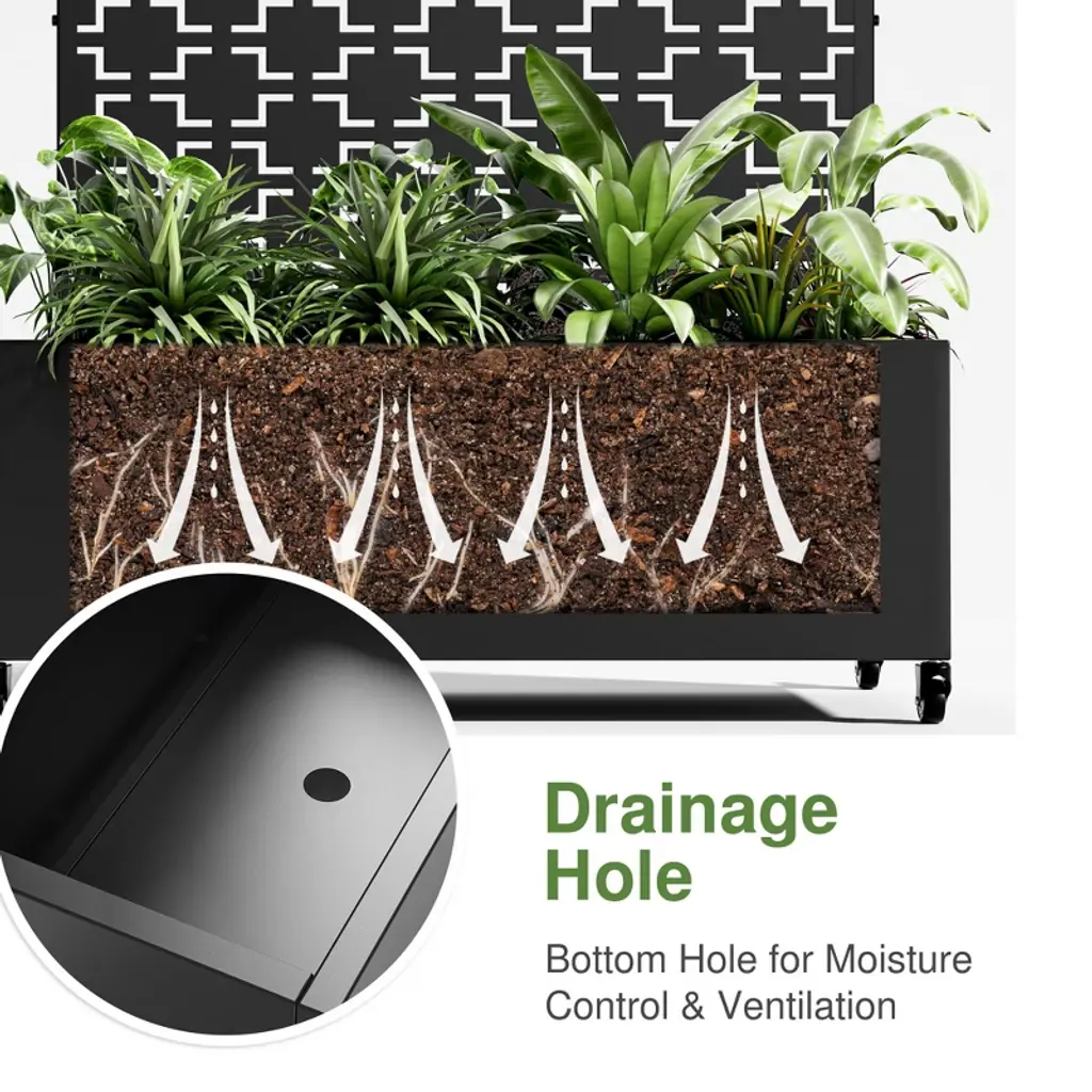 This innovative Trellis with Planter Box not only provides an excellent space for growing plants or vegetables, but its screen panels also add decorative elegance and support for climbing vines. It is made from durable galvanized metal, ensuring it can withstand harsh temperatures without cracking. Additionally, it offers a practical solution for hiding outdoor equipment like air conditioners.