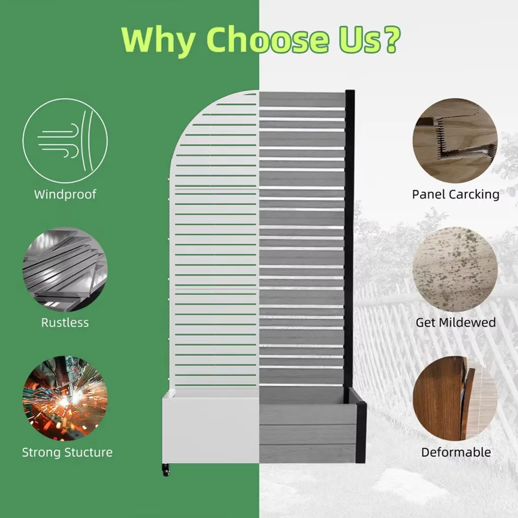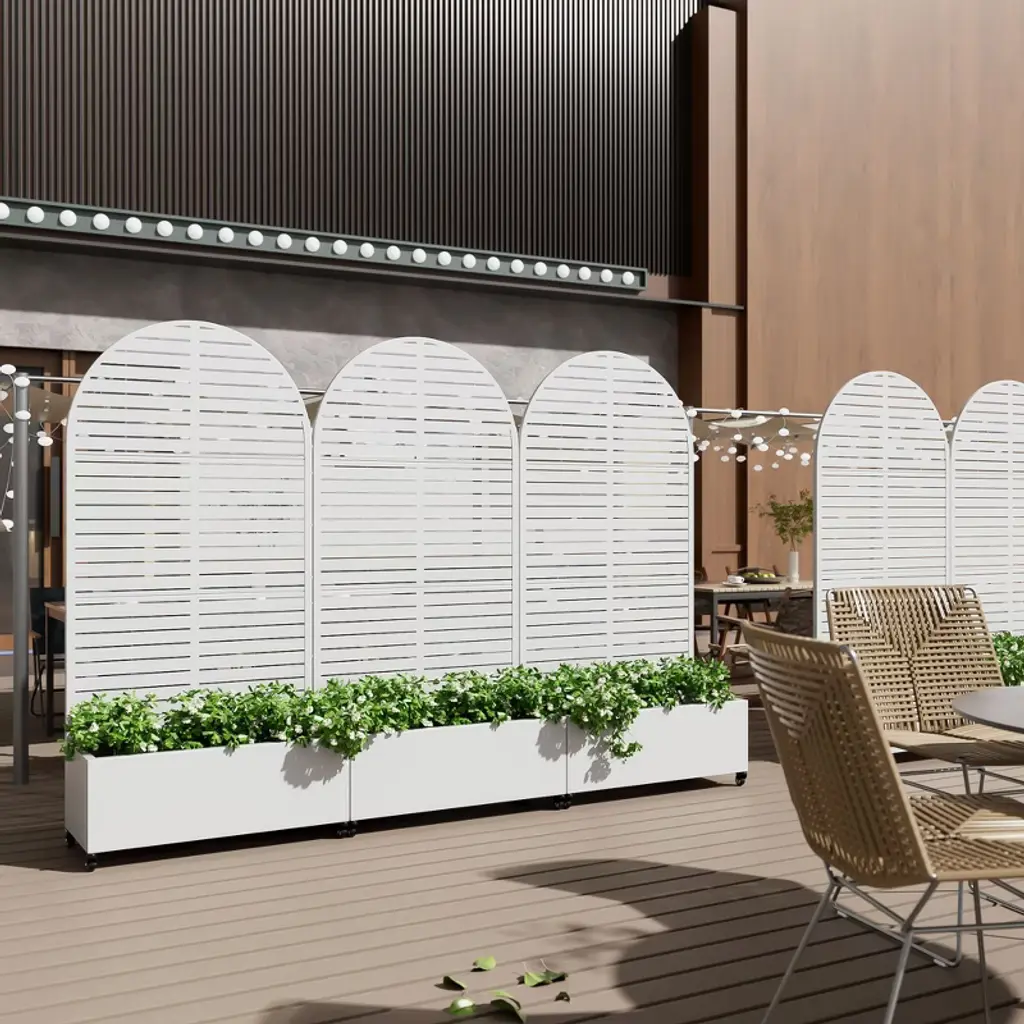 This elegant trellis planter is the perfect addition to your outdoor space, combining functionality and style in a durable, metal design. Crafted with a sturdy metal structure, it boasts a high-end texture and a surface coating that ensures rust and corrosion resistance, allowing your plants to thrive in all weather conditions. The perfect size, built-in drainage holes, and clever combination of a planter box with a trellis create a space-saving and visually appealing addition to any garden, patio, balcony, or backyard.