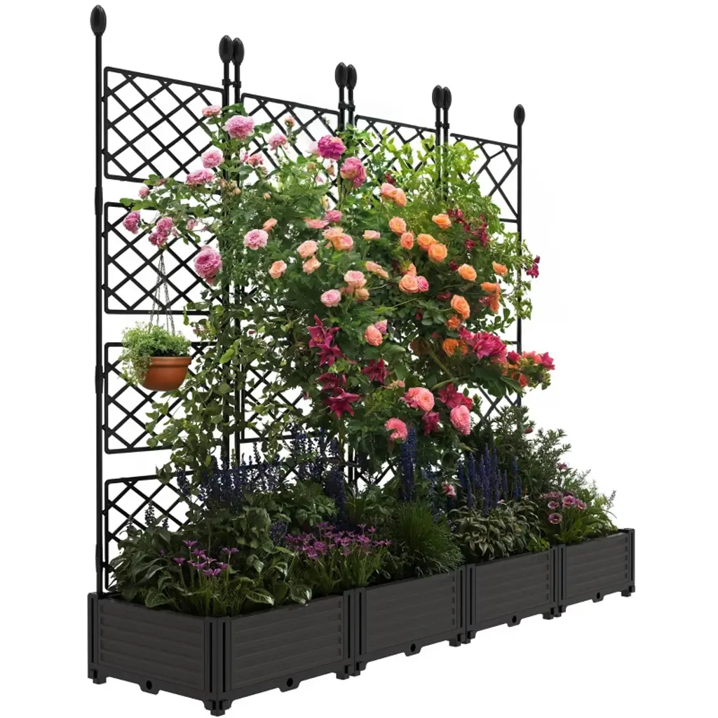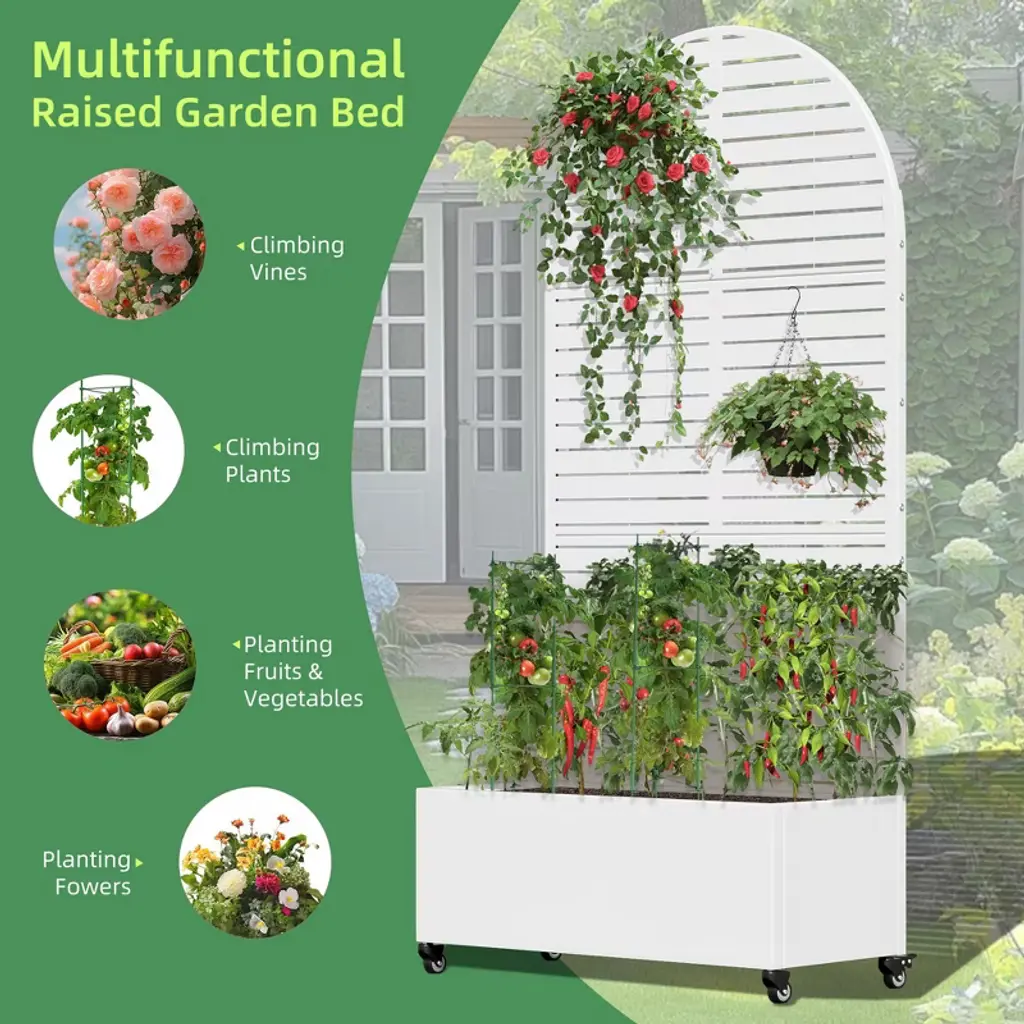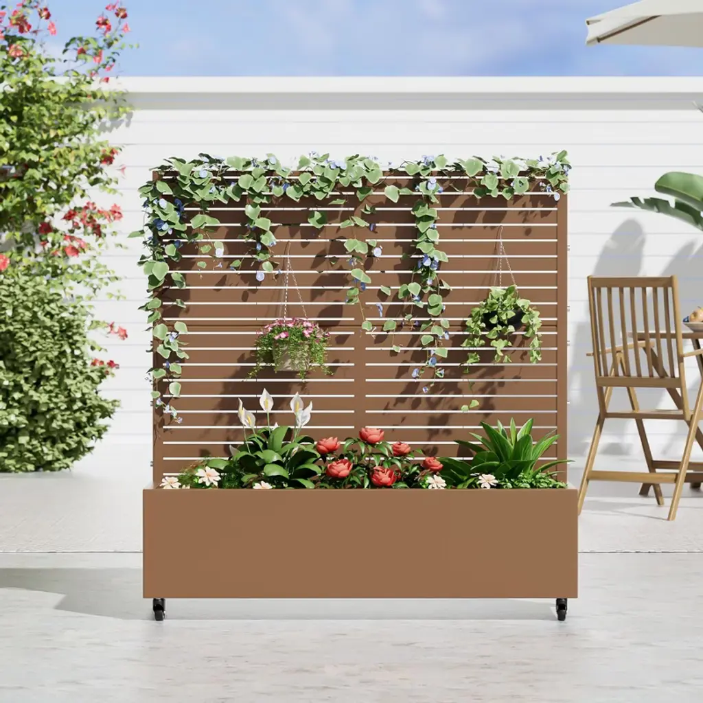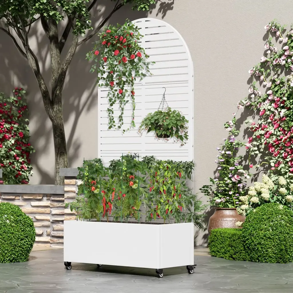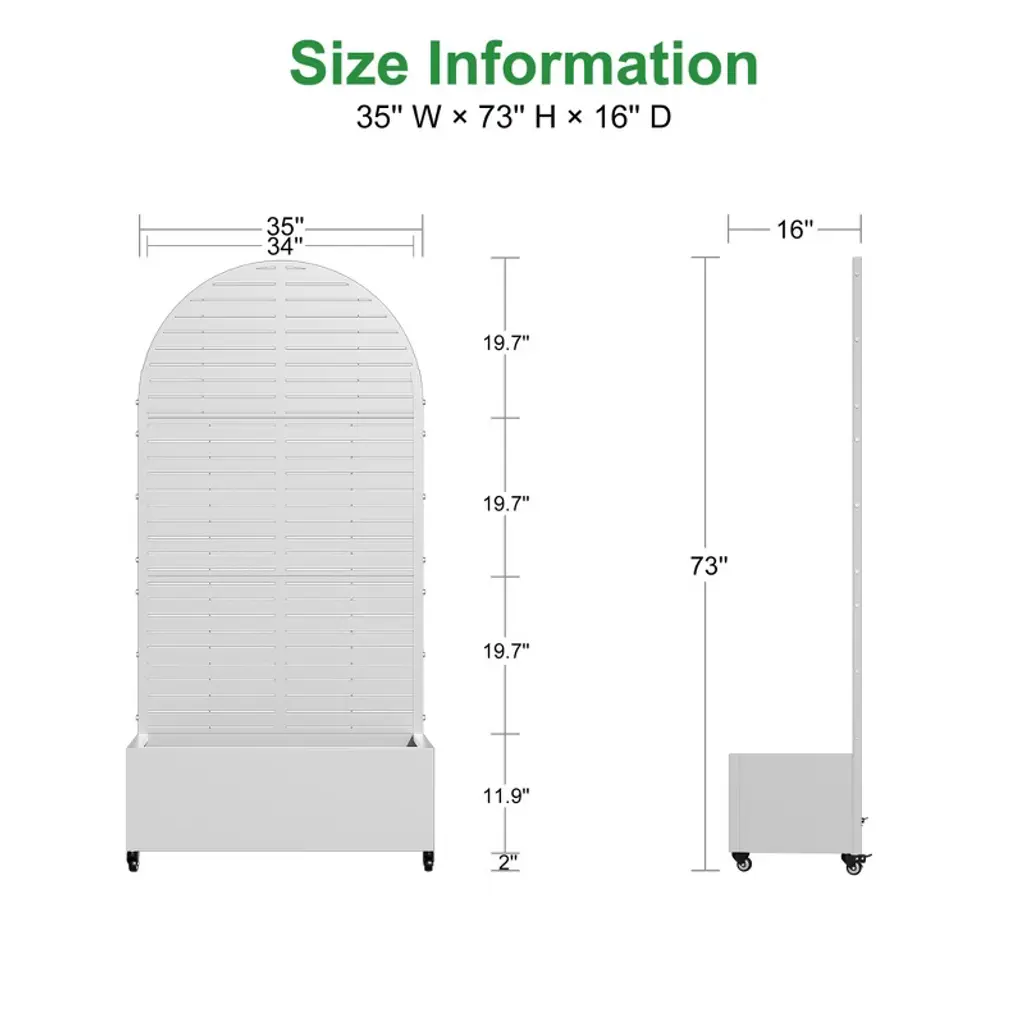 This elegant trellis planter is the perfect addition to your outdoor space, combining functionality and style in a durable, metal design. Crafted with a sturdy metal structure, it boasts a high-end texture and a surface coating that ensures rust and corrosion resistance, allowing your plants to thrive in all weather conditions. The perfect size, built-in drainage holes, and clever combination of a planter box with a trellis create a space-saving and visually appealing addition to any garden, patio, balcony, or backyard.