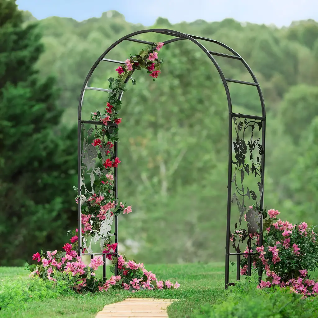 Pexfix 72 In. H X 35 In. W White Metal Arch Wall Planter Box With Trellis For Climbing Plants