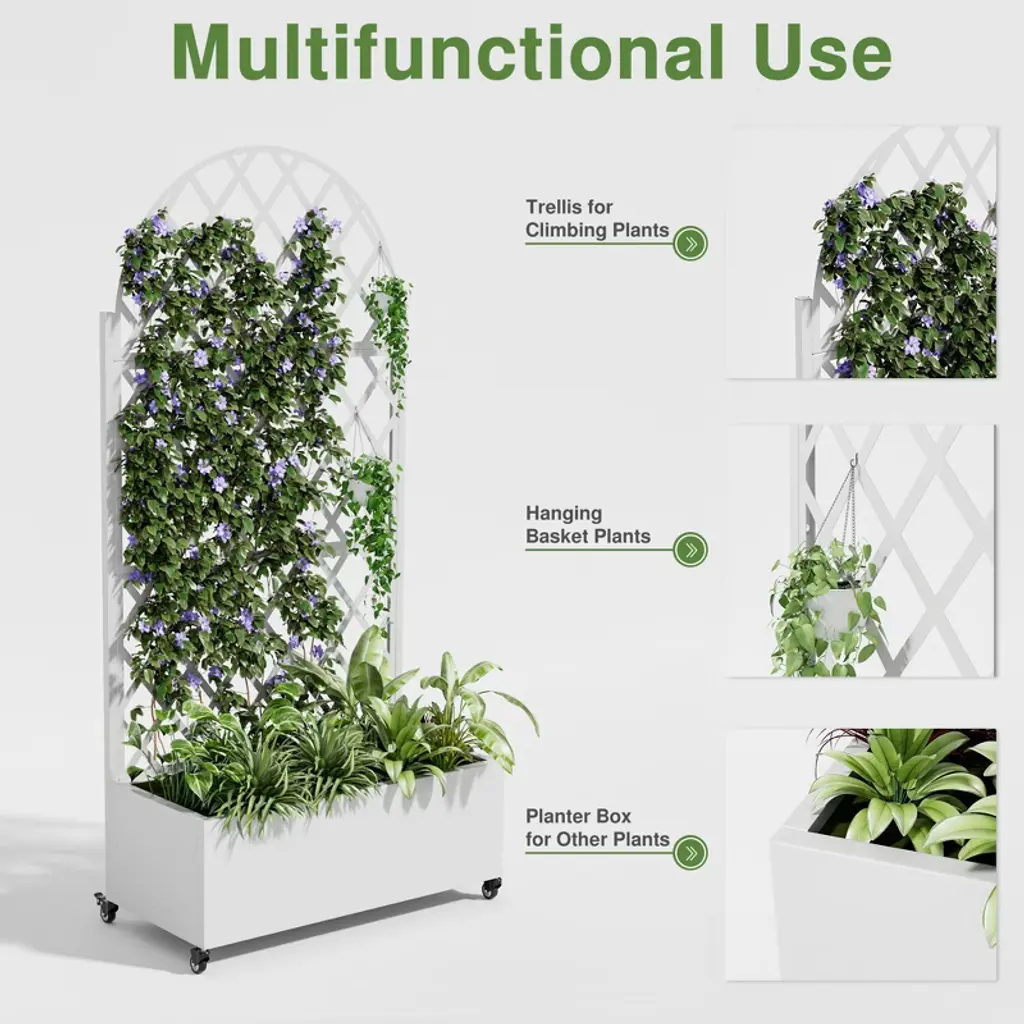 This innovative Trellis with Planter Box not only provides an excellent space for growing plants or vegetables, but its screen panels also add decorative elegance and support for climbing vines. It is made from durable galvanized metal, ensuring it can withstand harsh temperatures without cracking. Additionally, it offers a practical solution for hiding outdoor equipment like air conditioners.