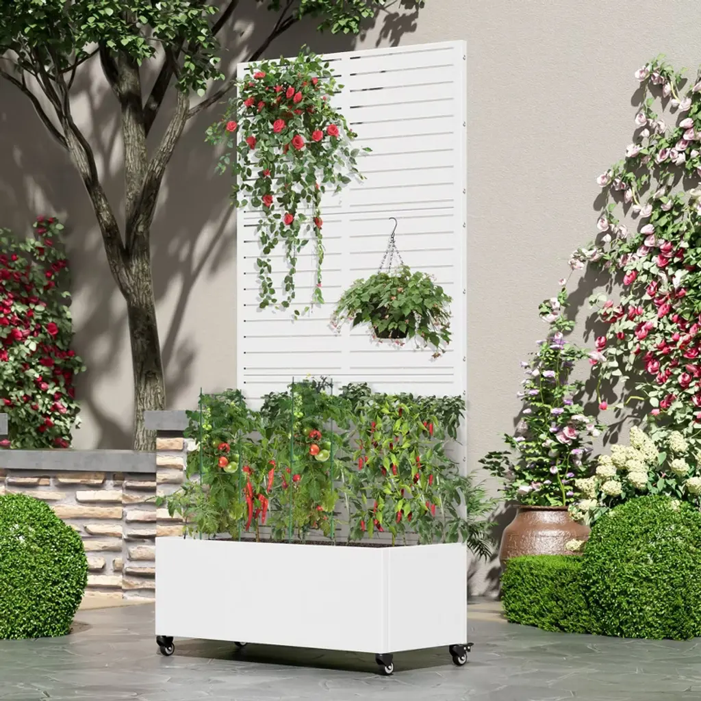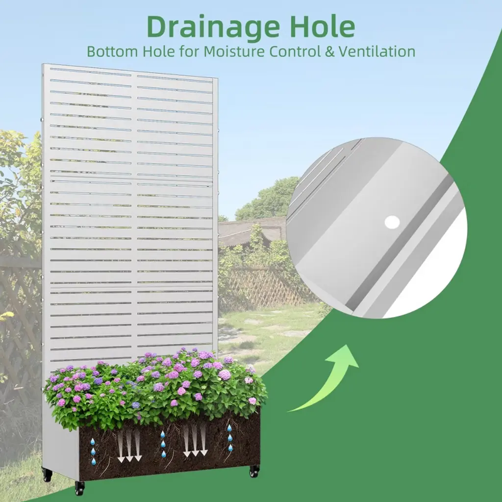 This elegant trellis planter is the perfect addition to your outdoor space, combining functionality and style in a durable, metal design. Crafted with a sturdy metal structure, it boasts a high-end texture and a surface coating that ensures rust and corrosion resistance, allowing your plants to thrive in all weather conditions. The perfect size, built-in drainage holes, and clever combination of a planter box with a trellis create a space-saving and visually appealing addition to any garden, patio, balcony, or backyard.