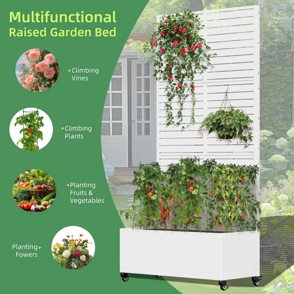 Pexfix 72 In. H X 35 In. W White Metal Rectangle Wall Planter Box With Trellis For Climbing Plants