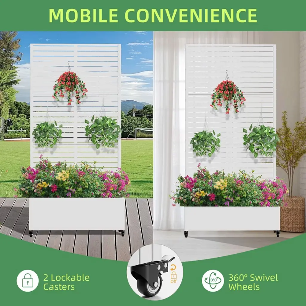 This elegant trellis planter is the perfect addition to your outdoor space, combining functionality and style in a durable, metal design. Crafted with a sturdy metal structure, it boasts a high-end texture and a surface coating that ensures rust and corrosion resistance, allowing your plants to thrive in all weather conditions. The perfect size, built-in drainage holes, and clever combination of a planter box with a trellis create a space-saving and visually appealing addition to any garden, patio, balcony, or backyard.