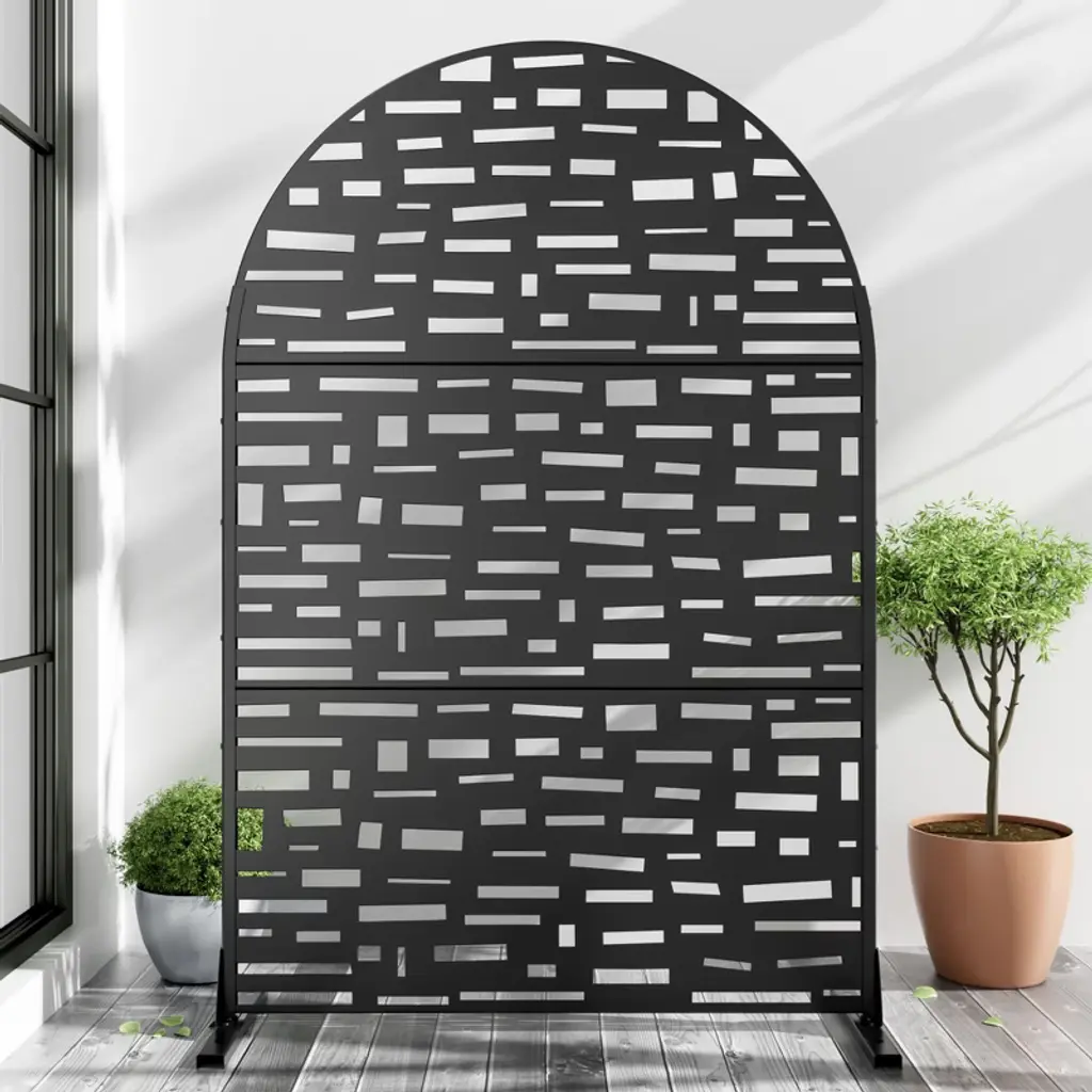 Pexfix 72 In. X 35 In. Arched Outdoor Metal Trellis With Planter Box In Black