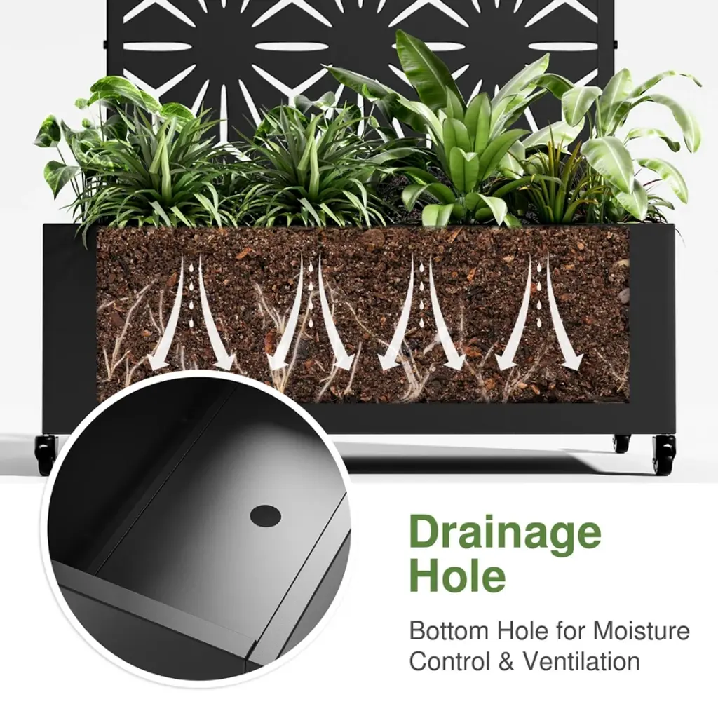 This innovative Trellis with Planter Box not only provides an excellent space for growing plants or vegetables, but its screen panels also add decorative elegance and support for climbing vines. It is made from durable galvanized metal, ensuring it can withstand harsh temperatures without cracking. Additionally, it offers a practical solution for hiding outdoor equipment like air conditioners.