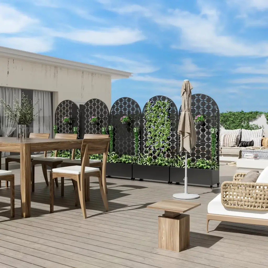 This innovative Trellis with Planter Box not only provides an excellent space for growing plants or vegetables, but its screen panels also add decorative elegance and support for climbing vines. It is made from durable galvanized metal, ensuring it can withstand harsh temperatures without cracking. Additionally, it offers a practical solution for hiding outdoor equipment like air conditioners.