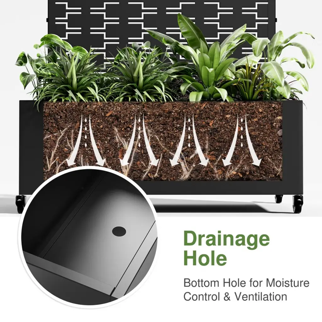 This innovative Trellis with Planter Box not only provides an excellent space for growing plants or vegetables, but its screen panels also add decorative elegance and support for climbing vines. It is made from durable galvanized metal, ensuring it can withstand harsh temperatures without cracking. Additionally, it offers a practical solution for hiding outdoor equipment like air conditioners.