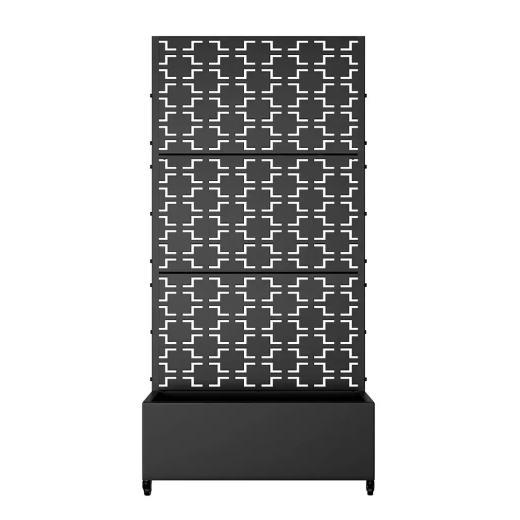 Pexfix 72 In. X 35 In. Outdoor Metal Trellis With Planter Box In Squares Pattern In Black