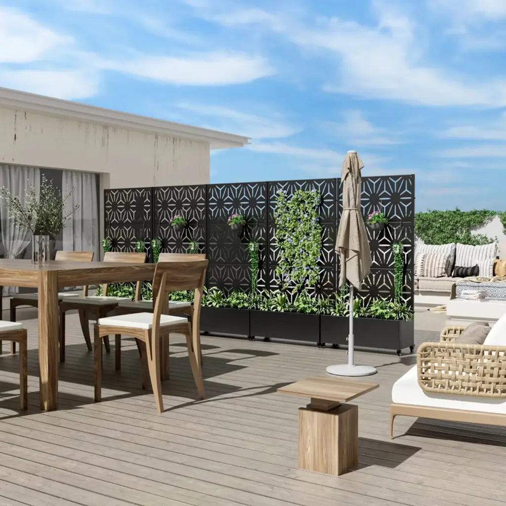 This innovative Trellis with Planter Box not only provides an excellent space for growing plants or vegetables, but its screen panels also add decorative elegance and support for climbing vines. It is made from durable galvanized metal, ensuring it can withstand harsh temperatures without cracking. Additionally, it offers a practical solution for hiding outdoor equipment like air conditioners.