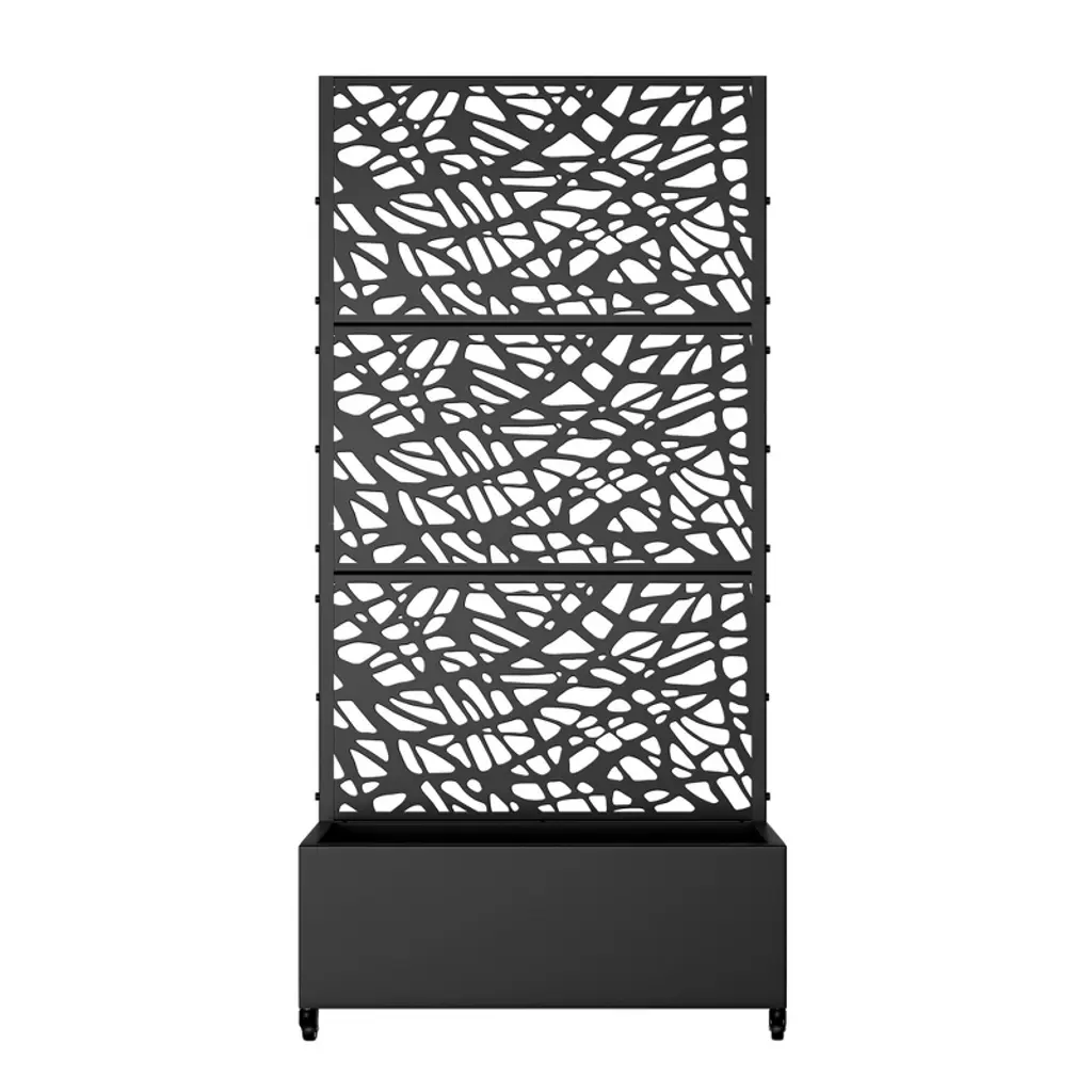 Pexfix 72 In. X 35 In. Outdoor Metal Trellis With Planter Box In Web Pattern In Black