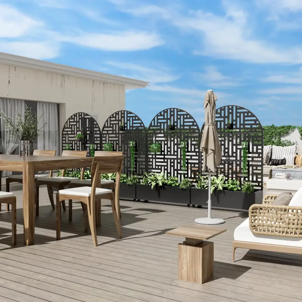 This innovative Trellis with Planter Box not only provides an excellent space for growing plants or vegetables, but its screen panels also add decorative elegance and support for climbing vines. It is made from durable galvanized metal, ensuring it can withstand harsh temperatures without cracking. Additionally, it offers a practical solution for hiding outdoor equipment like air conditioners.