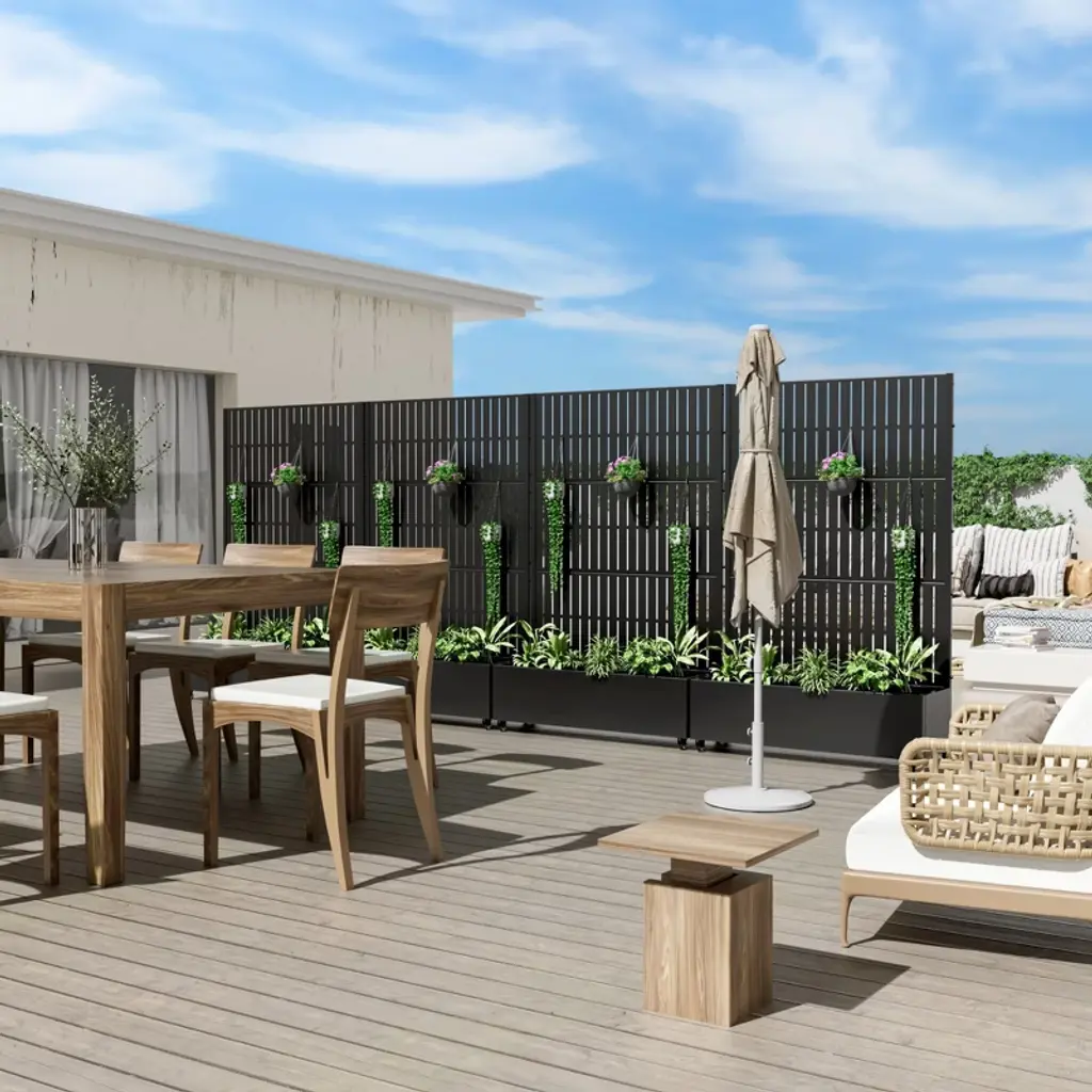 This innovative Trellis with Planter Box not only provides an excellent space for growing plants or vegetables, but its screen panels also add decorative elegance and support for climbing vines. It is made from durable galvanized metal, ensuring it can withstand harsh temperatures without cracking. Additionally, it offers a practical solution for hiding outdoor equipment like air conditioners.