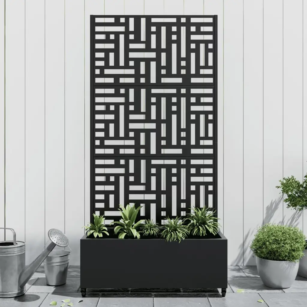 Pexfix 72 In. X 47 In. Outdoor Metal Trellis With Planter Box In Street Pattern In Black