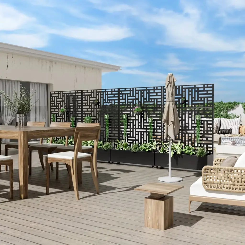 This innovative Trellis with Planter Box not only provides an excellent space for growing plants or vegetables, but its screen panels also add decorative elegance and support for climbing vines. It is made from durable galvanized metal, ensuring it can withstand harsh temperatures without cracking. Additionally, it offers a practical solution for hiding outdoor equipment like air conditioners.