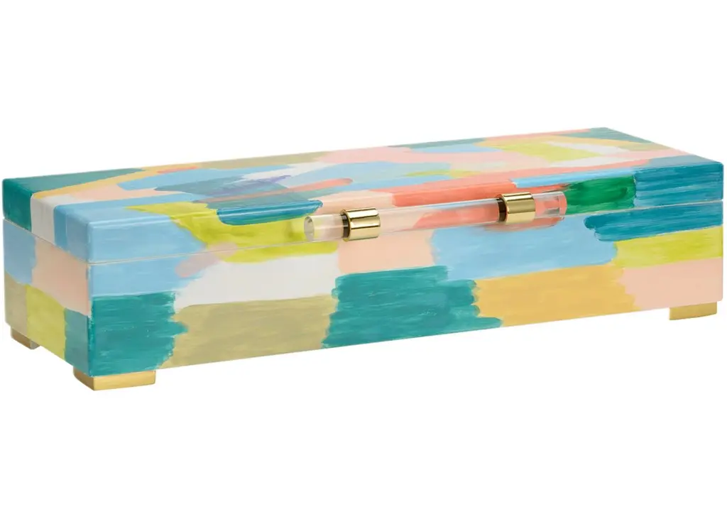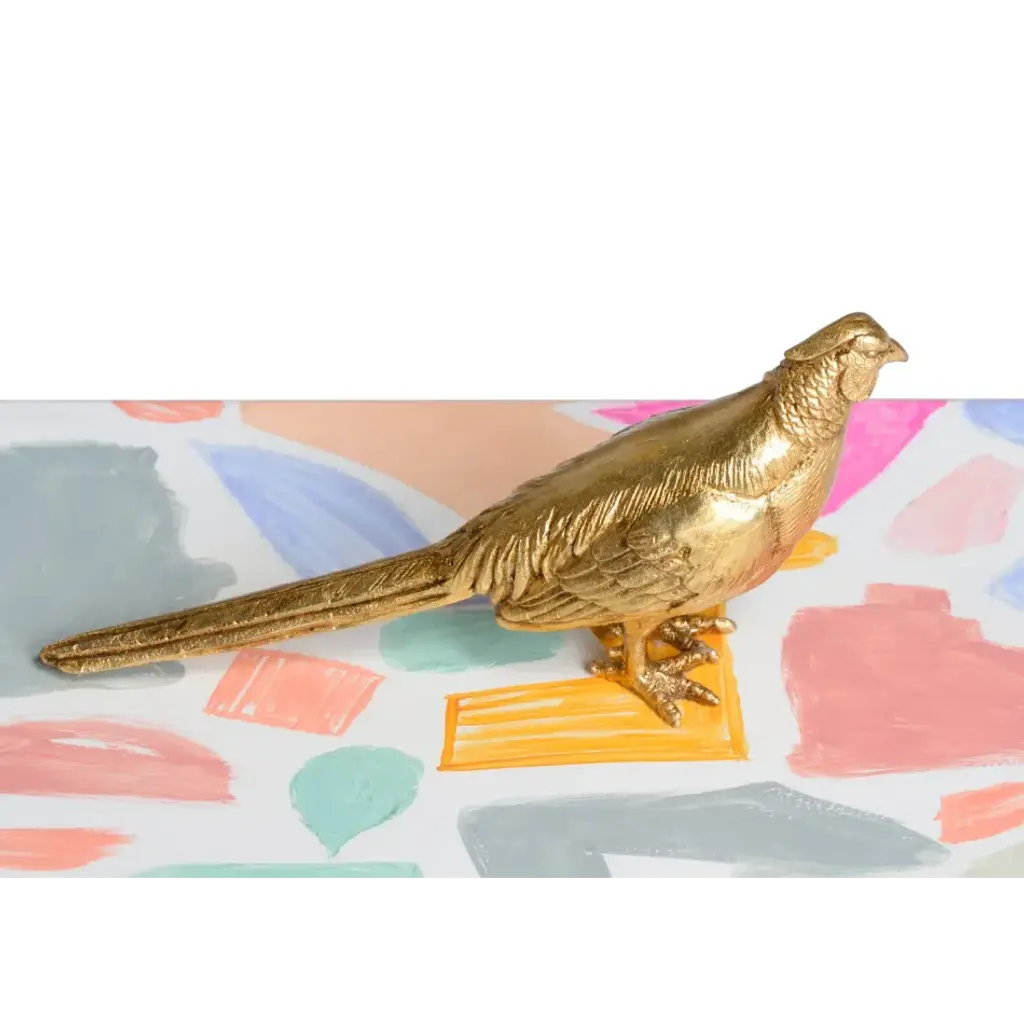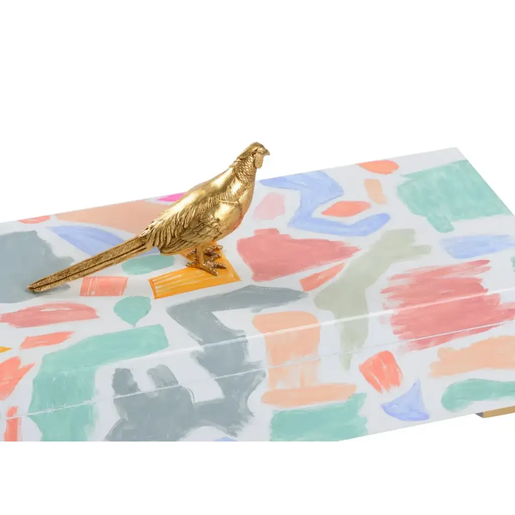 BOTH ARTISTIC AND FUNCTIONAL THE PHEASANT BOX DESIGNED BY ARTIST ELAINE BURGE IS PERFECTION! A HANDSOME, INTRICATELY DETAILED PHEASANT SITS ATOP A BOX WITH HAND PAINTED SWATHS OF VIBRANT COLORS. IT IS THE PERFECT BLEND OF TRADTIONAL AND CONTEMPORARY STYLING. WHAT A BEAUTIFUL PLACE TO HIDE A REMOTE!