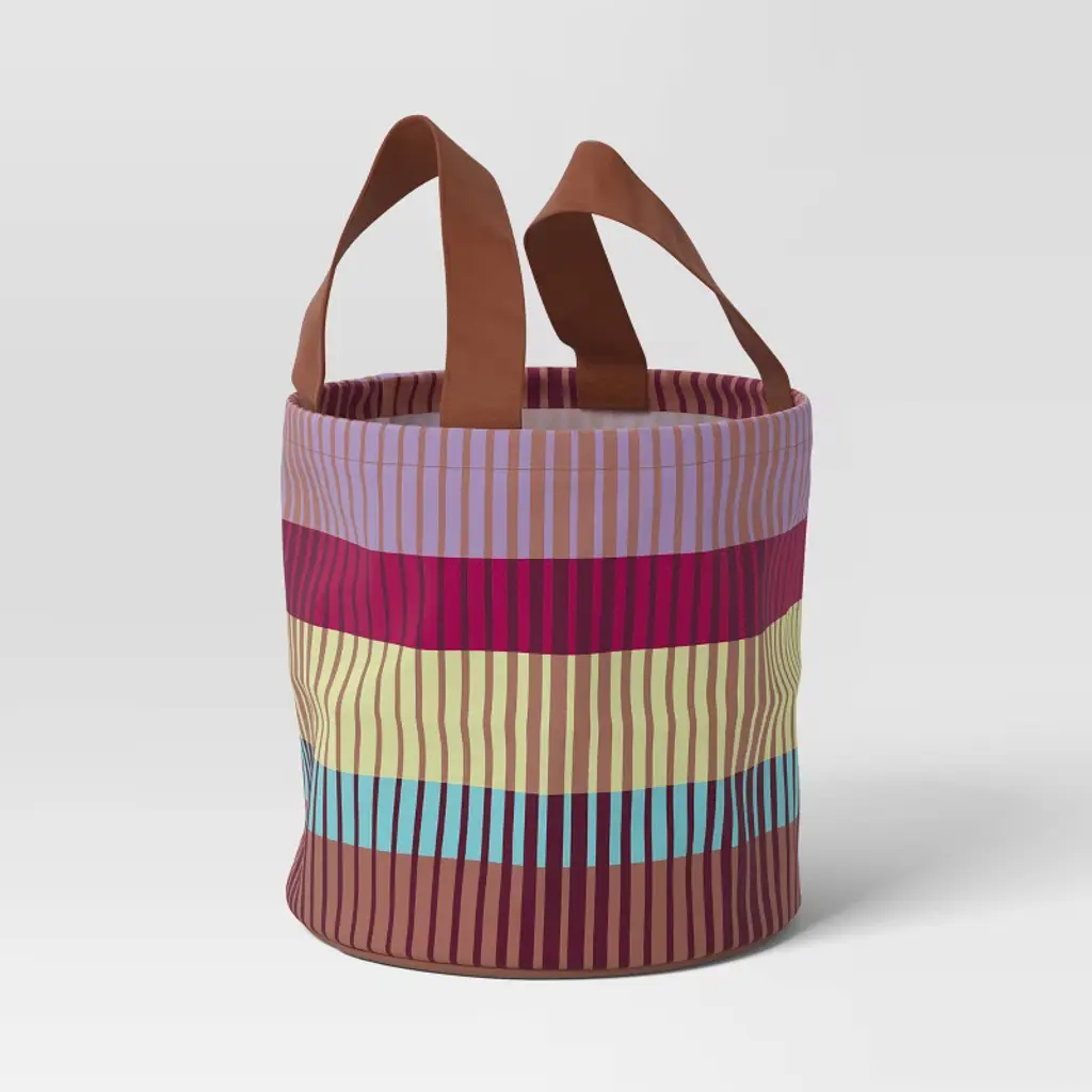 Marimekko’s Piccolo container features a striped pattern designed by Vuokko Eskolin-Nurmesniemi in 1953, with light-colored stripes painted in free brush strokes. The pattern is best known for the legendary Jokapoika shirt, one of Marimekko’s most famous products. Piccolo storage containers are made from sturdy organic cotton canvas, with the pattern printed in Helsinki, Finland. Finished with practical carry handles, these fabric baskets are perfect for storing clothes, accessories and household items, or for keeping toys organized in a children’s room.