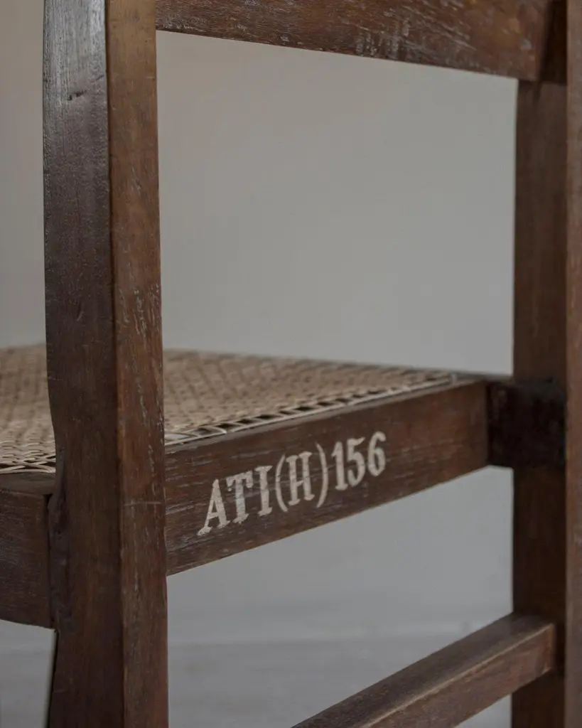 (A set of 4 available / price per piece) authentic PJ-SI-54-A box chairs by Pierre Jeanneret - Sometimes named the PJ-010204 teak chair.Overall good condition, amazing patina and all chairs have numbered marks, one of the pieces has metal supports that are still intact. Chair in solid teak and braided canework. Solid "banner" type backrest, slanted and slightly curved. Asymmetric "frame"-type canework seat and double leg assembly, with the legs connected by two rails. This particular model has slightly lifted feet, probably because they were used on an unequal surface.Photos of the current and original state - Comes with authenticity certificate. Items will be shipped insured and packed in a wooden crate.References:Catalogue Tajan, similar model, sale on 15/03/2011 in Paris, lot no. 111. Sold for € 1.215Catalogue Phillips - Design New York, Similar model, sale on 15/12/2015, lot no. 342. Set of eight sold for €179.388Catalogue Wight Auction, Similar model, sale on 14/12/2017, page 5, lot no. 104. Set of four sold for $13.750