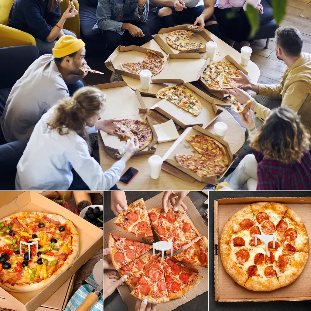 Good Material: Made from sturdy and crush-resistant cowhide paper material, these pizza boxes are ensuring that your pizza stays steady during service. The compact size means that you can store many boxes in a small space, saving you valuable storage space.Easy to Install: Our mini pizza boxes are very easy to assemble without any adhesives, simply fold along the pre-scored lines and tucks in the flaps to create a secure enclosure. While the secure closure ensures that your food stays fresh, making them perfect for busy restaurants or pizzerias.Wide Application: Whether you are hosting a pizza party or need a convenient way to transport your delicious pies, these mini pizza boxes are suitable for various occasions, such as picnics, outdoor dining, family gatherings, and more. Plus, you can personalize them by adding labels or logos to make them truly unique and special.Thoughtful Gift: Anyone who love pizza will like these mini pizza boxes as a thoughtful gift. These boxes are not only functional but also make great decorative pieces. They'll love displaying them on their shelf or using them to transport their favorite pizza.Specification:Material: Cowhide PaperColor: WhiteSize: 6.3 x 6.3 x 1.57"/ 160 x 160 x 40mm